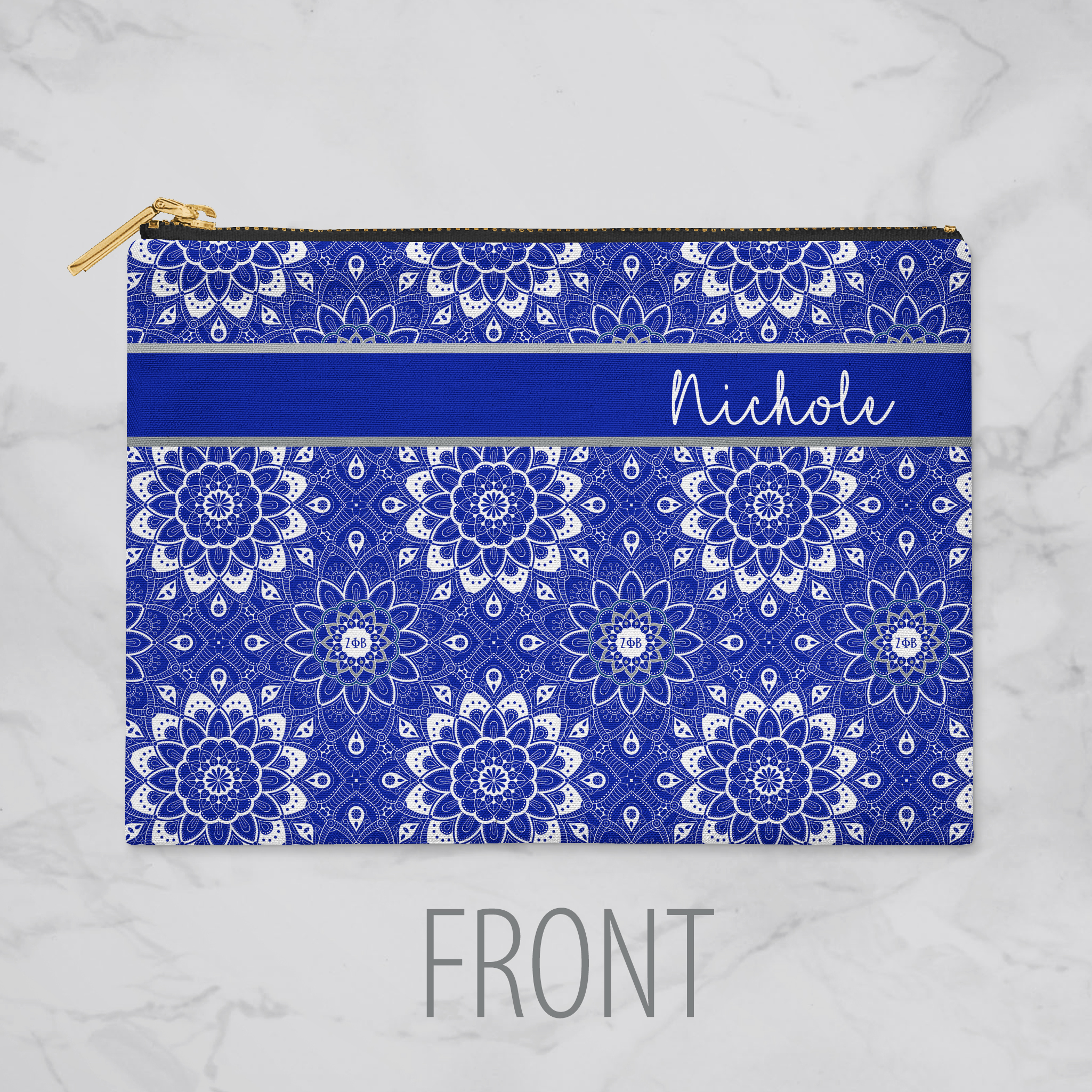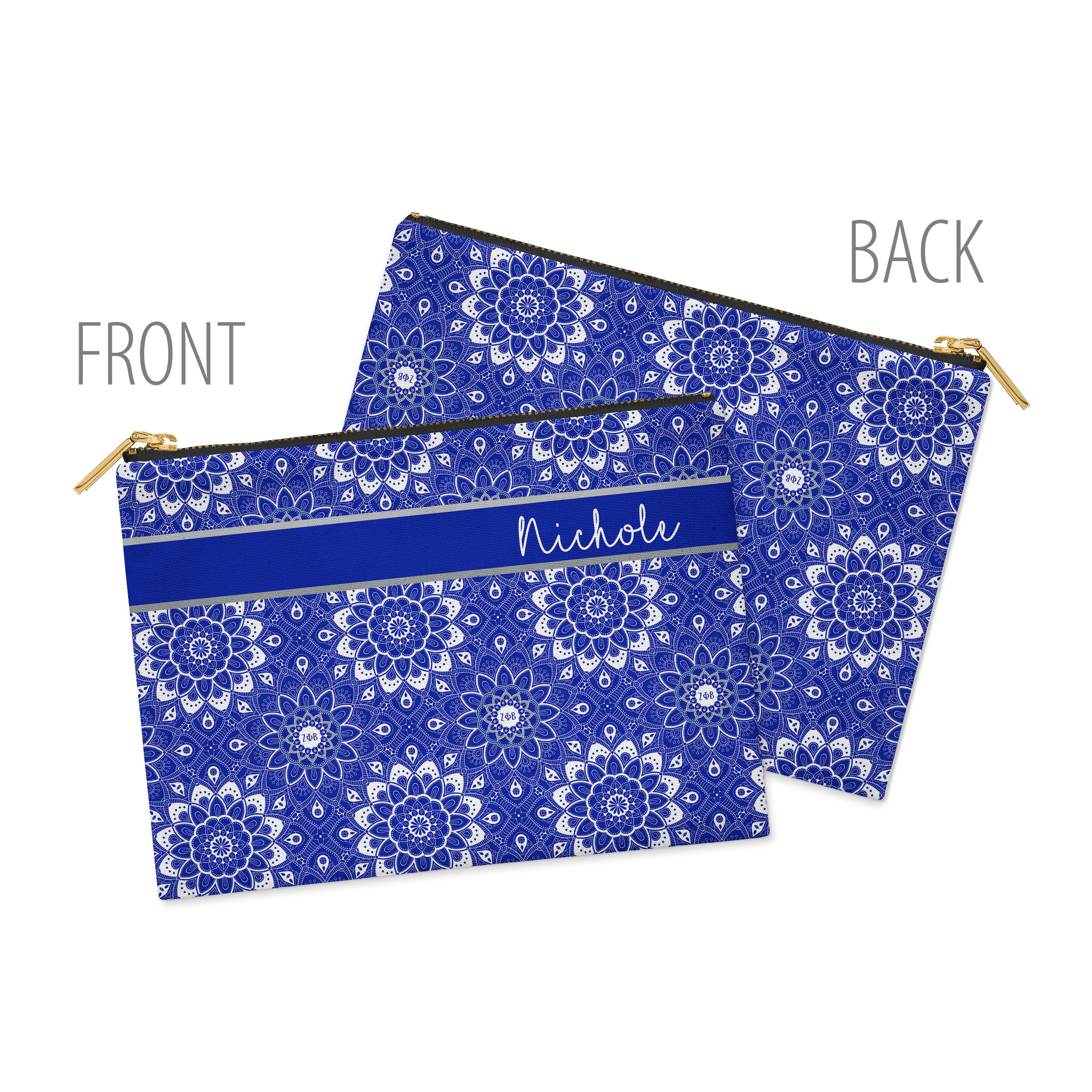 Zeta Phi Beta - Cosmetic Case / Makeup Bag - Mandala - Personalize with Your Name