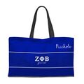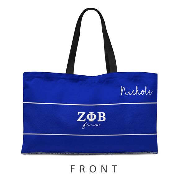 Delight someone you adore with this awesome bag. Performing double duty as an everyday tote or a weekender travel bag with NO zipper closure, this bag is sure to delight the sorority sister you are buying this for.