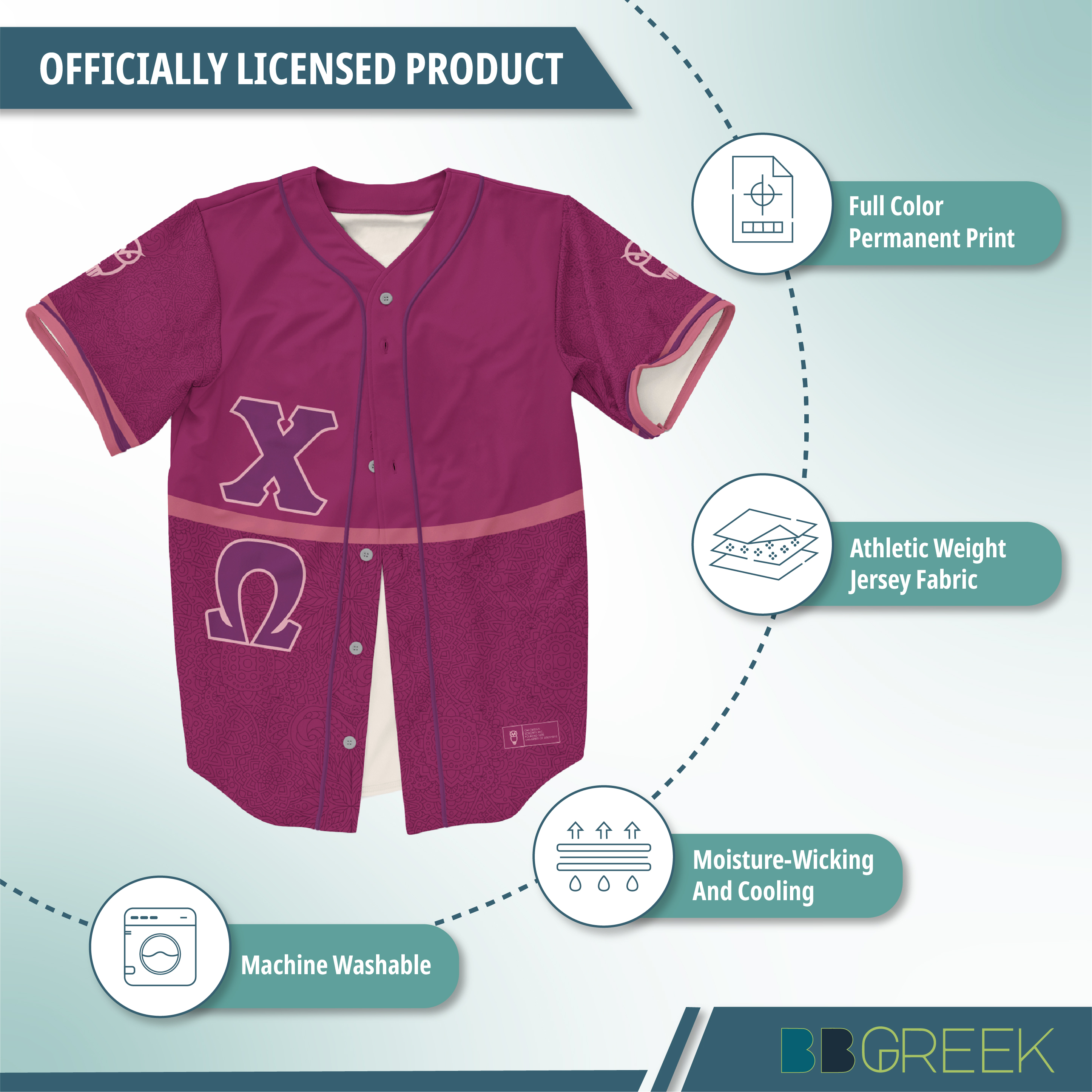 Chi Omega Sorority - Baseball Jersey - Mandala Crest