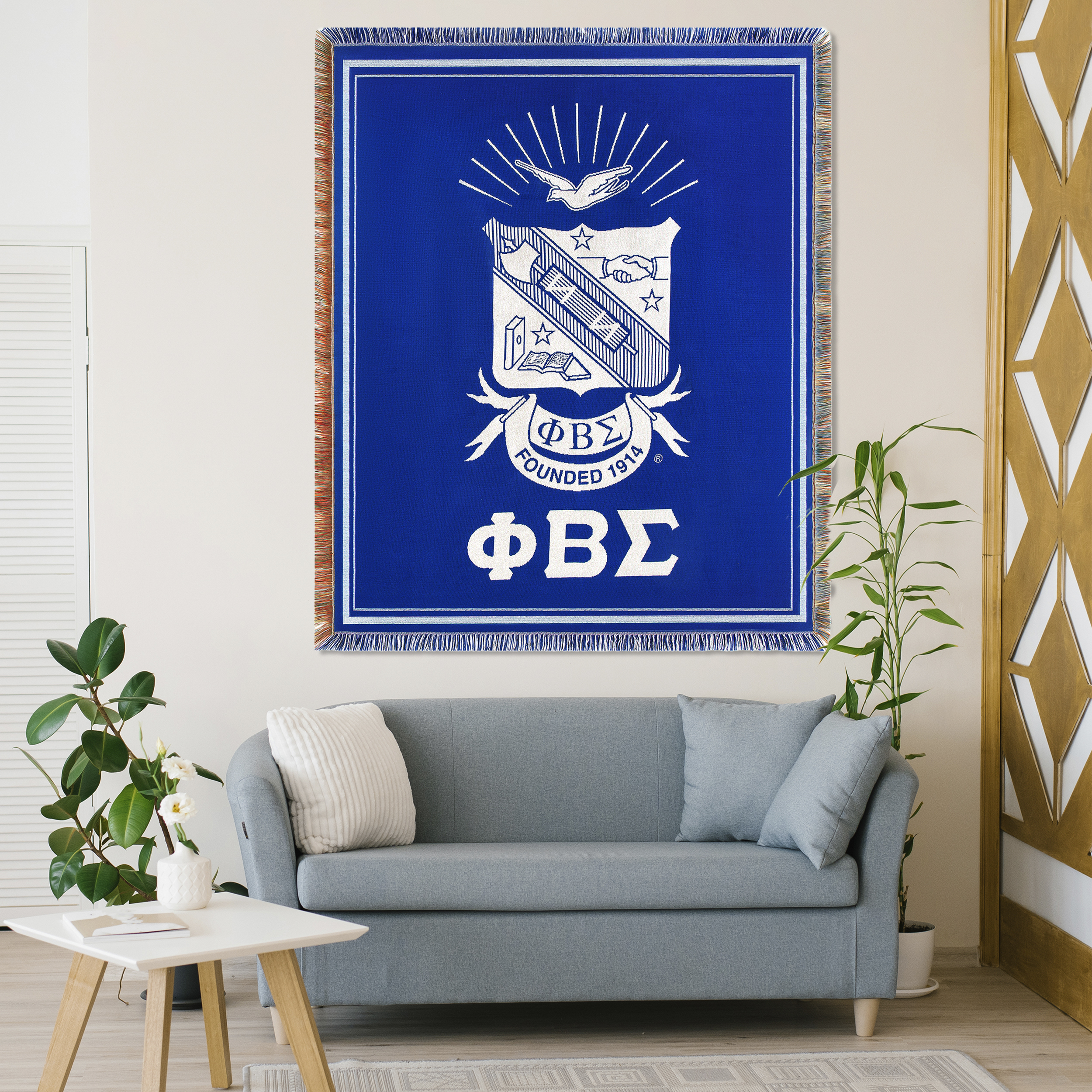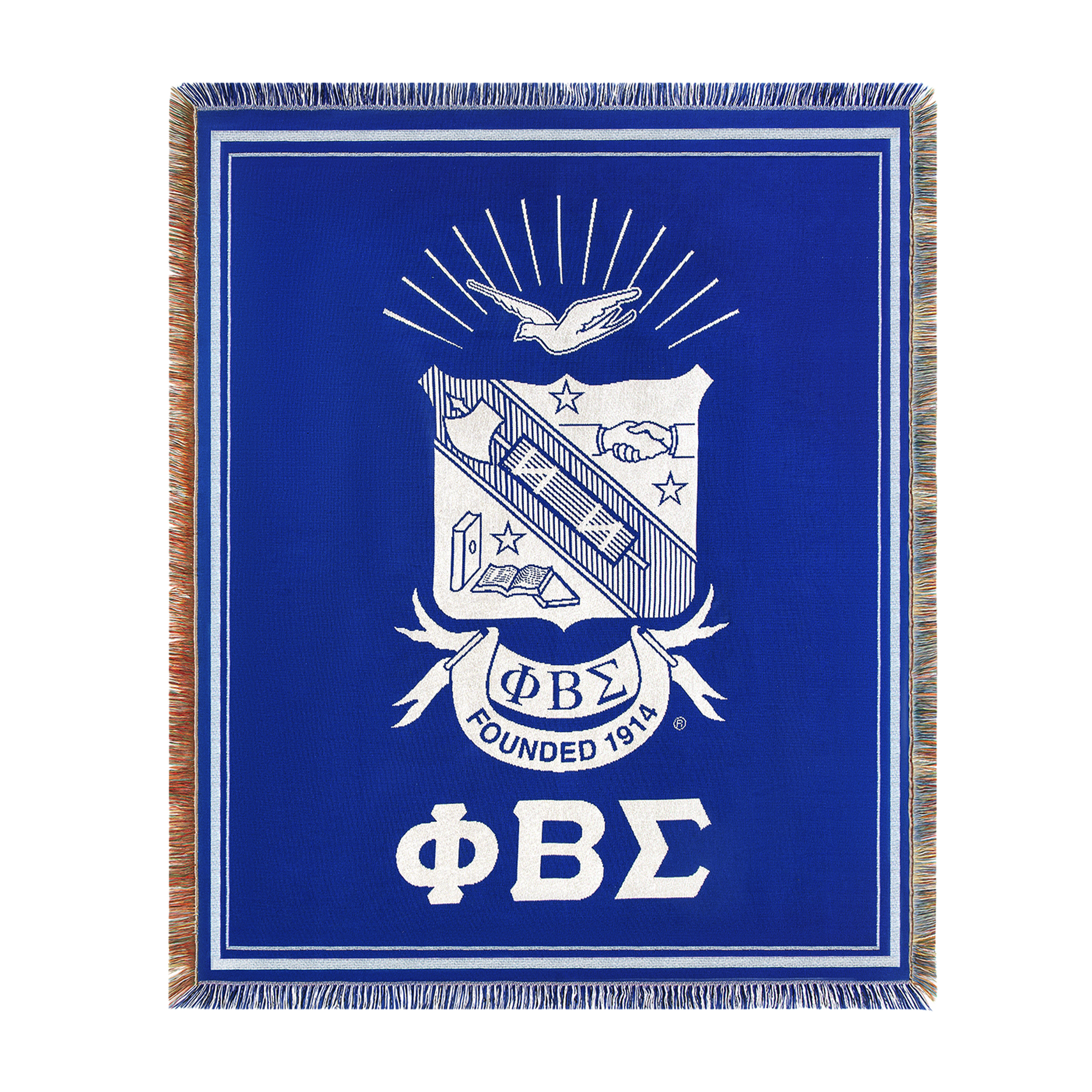 Crafted with intricate jacquard weaving, the design ensures rich detailing that won't fade, crack, or peel. The versatile size is ideal for various uses, while the classic fringes along the edges add a refined, decorative touch. This officially licensed product meets the high standards of Phi Beta Fraternity, Inc., ensuring authenticity and quality in every detail.PHI BETA SIGMA TAPESTRY: Celebrate Phi Beta Sigma pride with this woven tapestry, designed with intricate craftsmanship. This premium throw reflects the fraternity's legacy and adds a meaningful touch to any living space.