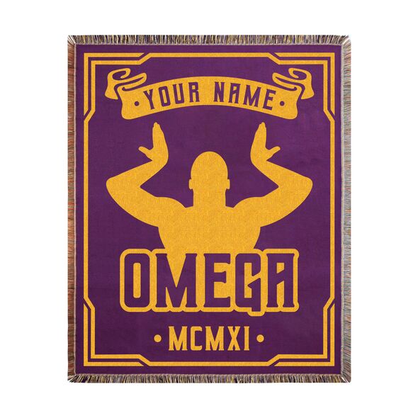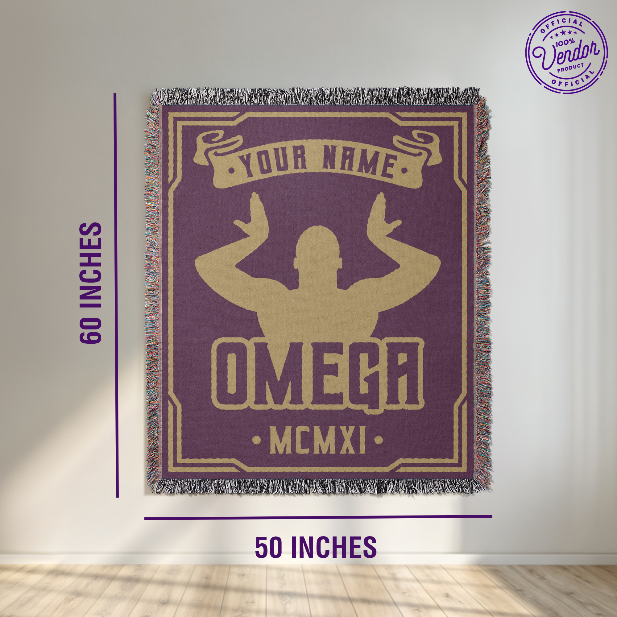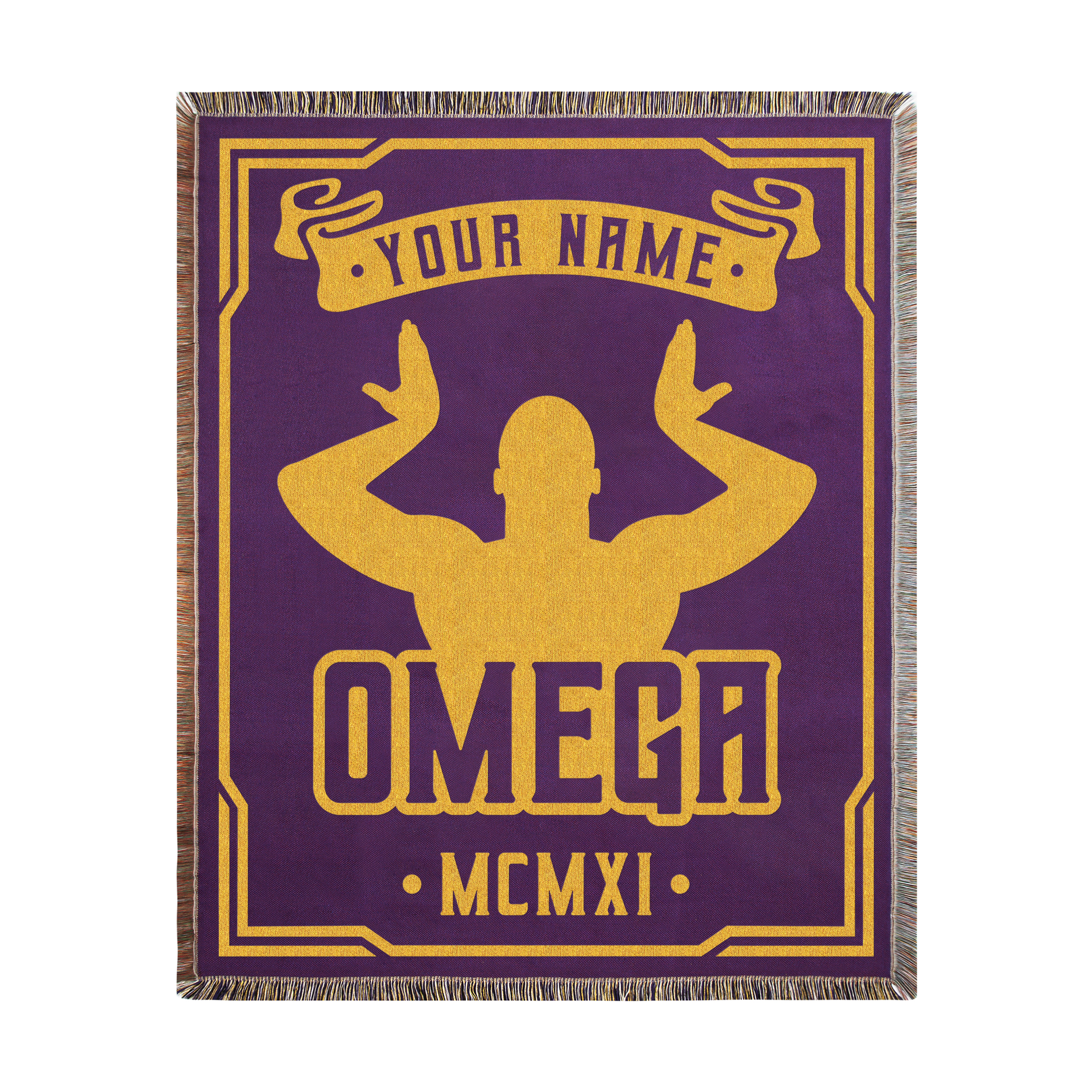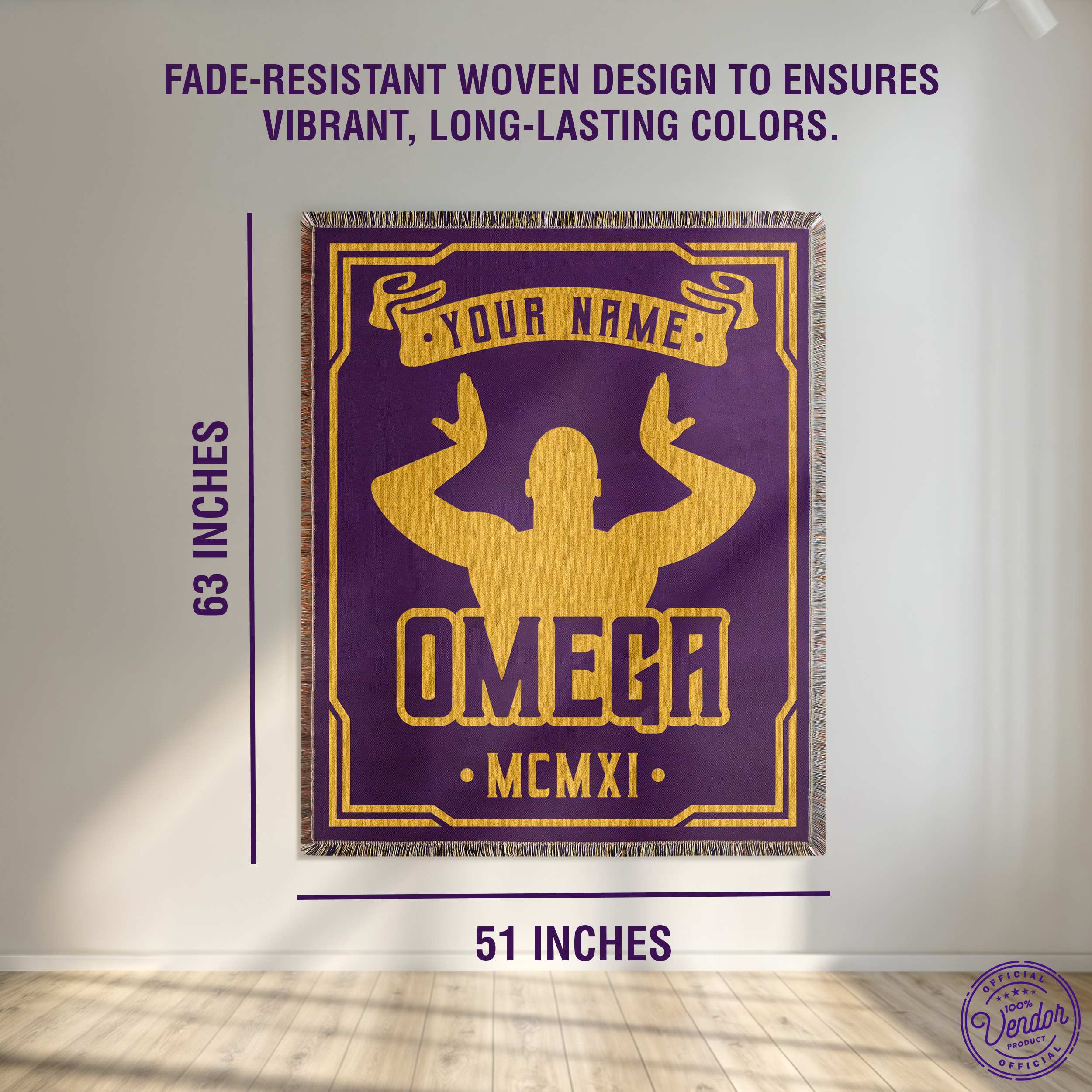 Crafted with intricate jacquard weaving, the design ensures rich detailing that won't fade, crack, or peel. The versatile size is ideal for various uses, while the classic fringes along the edges add a refined, decorative touch. This officially licensed product meets the high standards of Omega Psi Phi Fraternity, Inc., ensuring authenticity and quality in every detail.Omega Psi Phi Tapestry: Celebrate Omega Psi Phi with this intricately crafted woven tapestry, designed to reflect the legacy of the fraternity through detailed patterns and premium craftsmanship. This item can also be personalized with custom text, making it a meaningful and one-of-a-kind keepsake.
