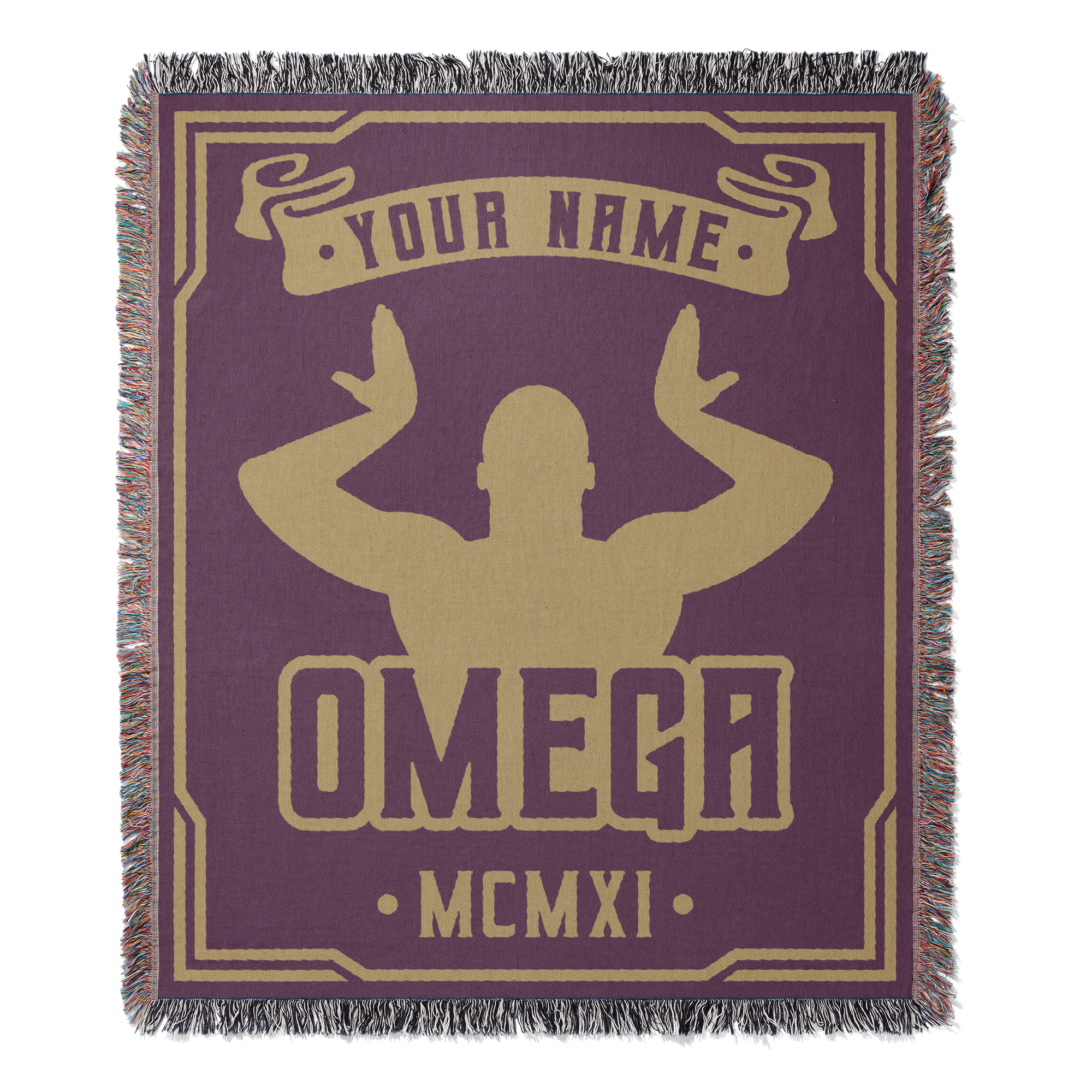 Crafted with intricate jacquard weaving, the design ensures rich detailing that won't fade, crack, or peel. The versatile size is ideal for various uses, while the classic fringes along the edges add a refined, decorative touch. This officially licensed product meets the high standards of Omega Psi Phi Fraternity, Inc., ensuring authenticity and quality in every detail.Omega Psi Phi Tapestry: Celebrate Omega Psi Phi with this intricately crafted woven tapestry, designed to reflect the legacy of the fraternity through detailed patterns and premium craftsmanship. This item can also be personalized with custom text, making it a meaningful and one-of-a-kind keepsake.