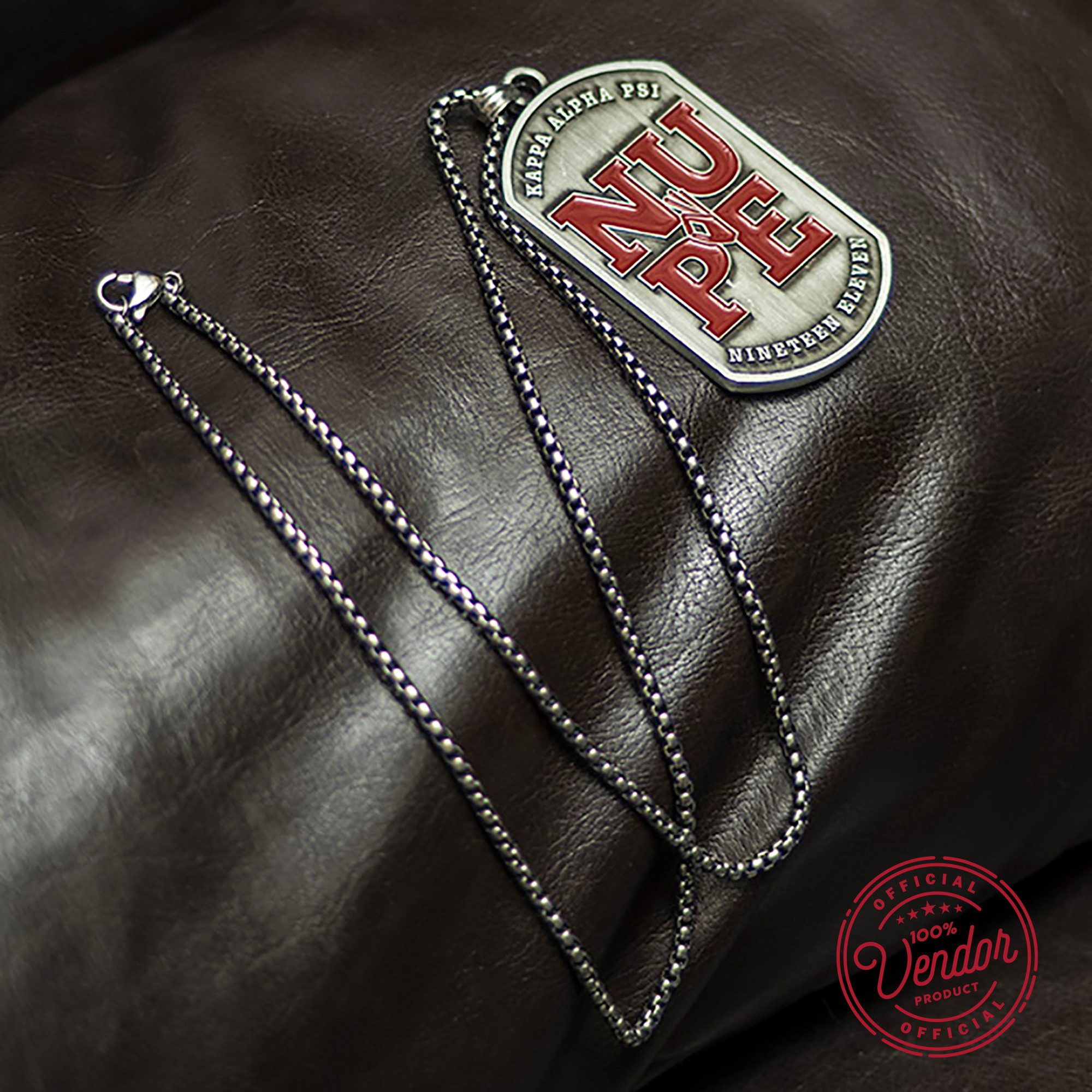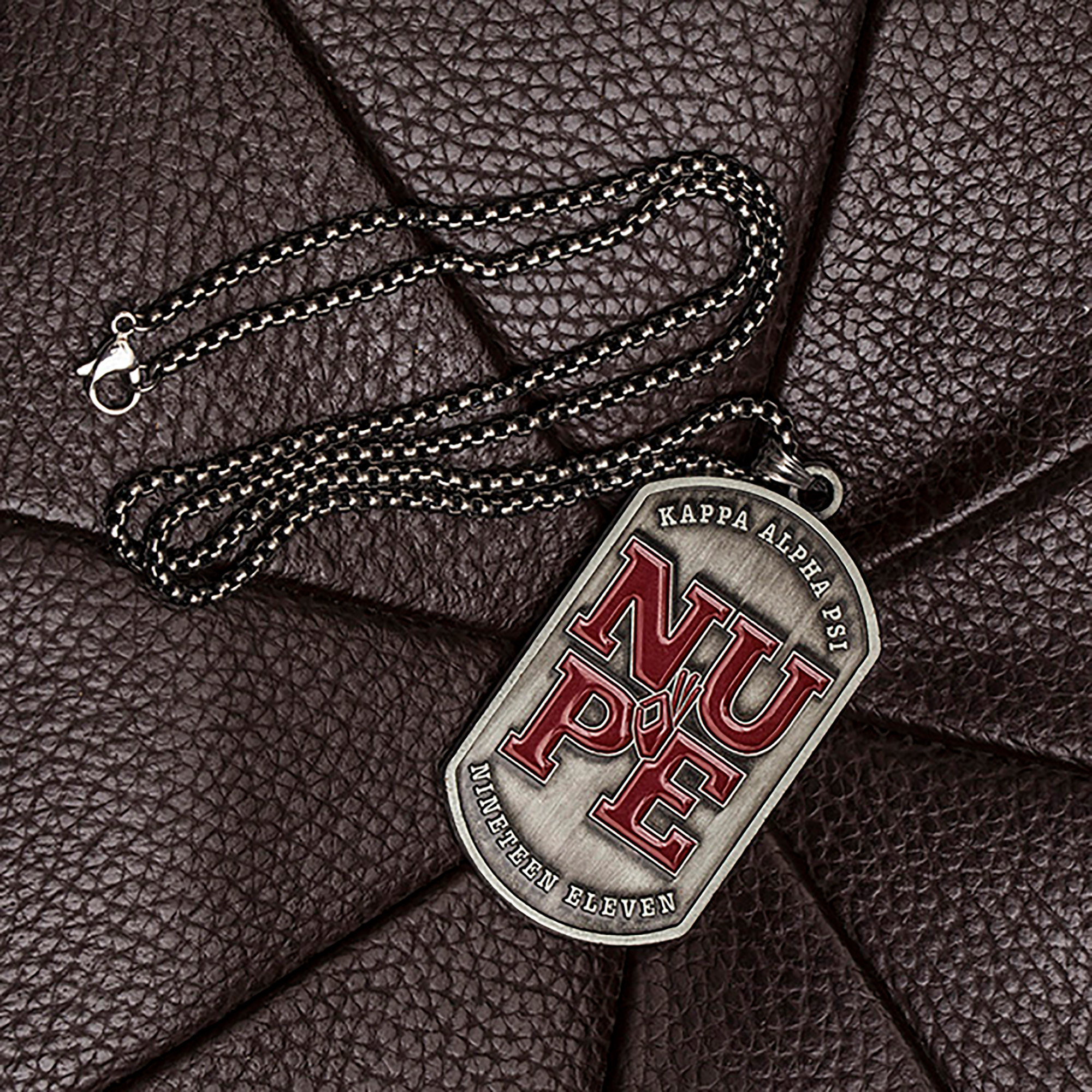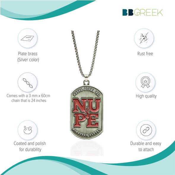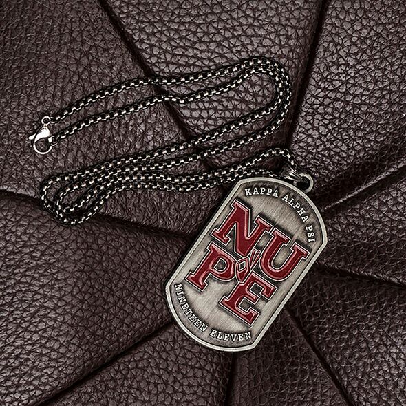 Made from non-allergenic brass with an anti-tarnish silver coating, this necklace is built for everyday wear. The pendant hangs from a 3mm x 60cm chain, adjustable to 24 inches, offering a comfortable and versatile fit. Whether paired with a Kappa Alpha Psi bracelet for men or worn on its own, it adds a strong personal touch. This dog tag is perfect for those searching for authentic Kappa Alpha Psi gifts that last.