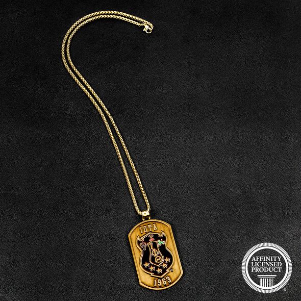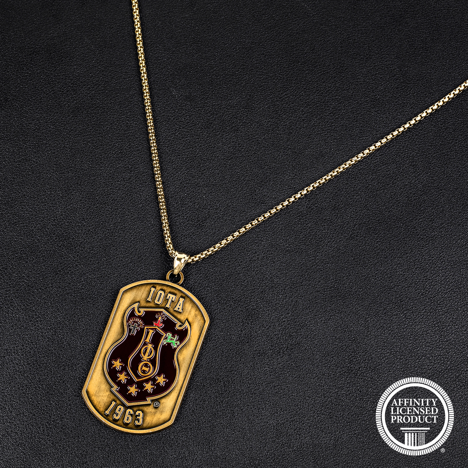 The accessory includes a durable 3mm x 60cm chain adjustable to achieve a perfect length of 24 inches. Each piece also comes nestled in a velvet pouch, presenting a ready-to-gift package appreciated by any Iota Phi Theta follower. Rest assured, we at Iota Phi Theta hold our product quality in high regard and offer a satisfaction guarantee for your peace of mind. You can confidently purchase this Iota Phi Theta dog tag pendant necklace, knowing it exemplifies high-caliber craftsmanship.