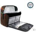Decorated with permanent, eco-friendly fabric printing, permanently dyed into the fibers, that will not fade, crack or bleed and lasts permanently, even with repeated use and cleanings, withstanding the normal wear and tear of a travel bag.