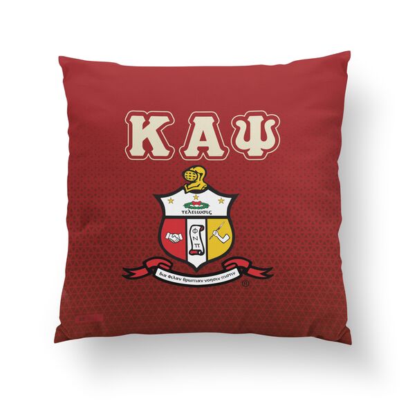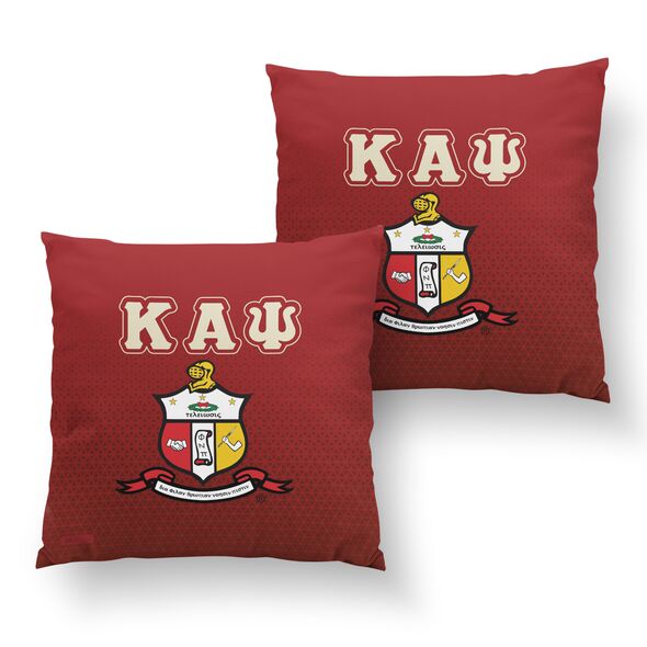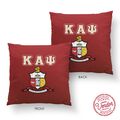 This pillow cover measures approximately 15.74 x 15.74 inches (40 x 40 cm) and is designed to fit most 16 x 16 pillow inserts. It does not include an insert. The fabric is resistant to fading, cracking, and peeling, even with repeated handling or cleaning. The item is officially licensed by Kappa Alpha Psi Fraternity, Inc., meeting the organization's standards for merchandise quality and design.