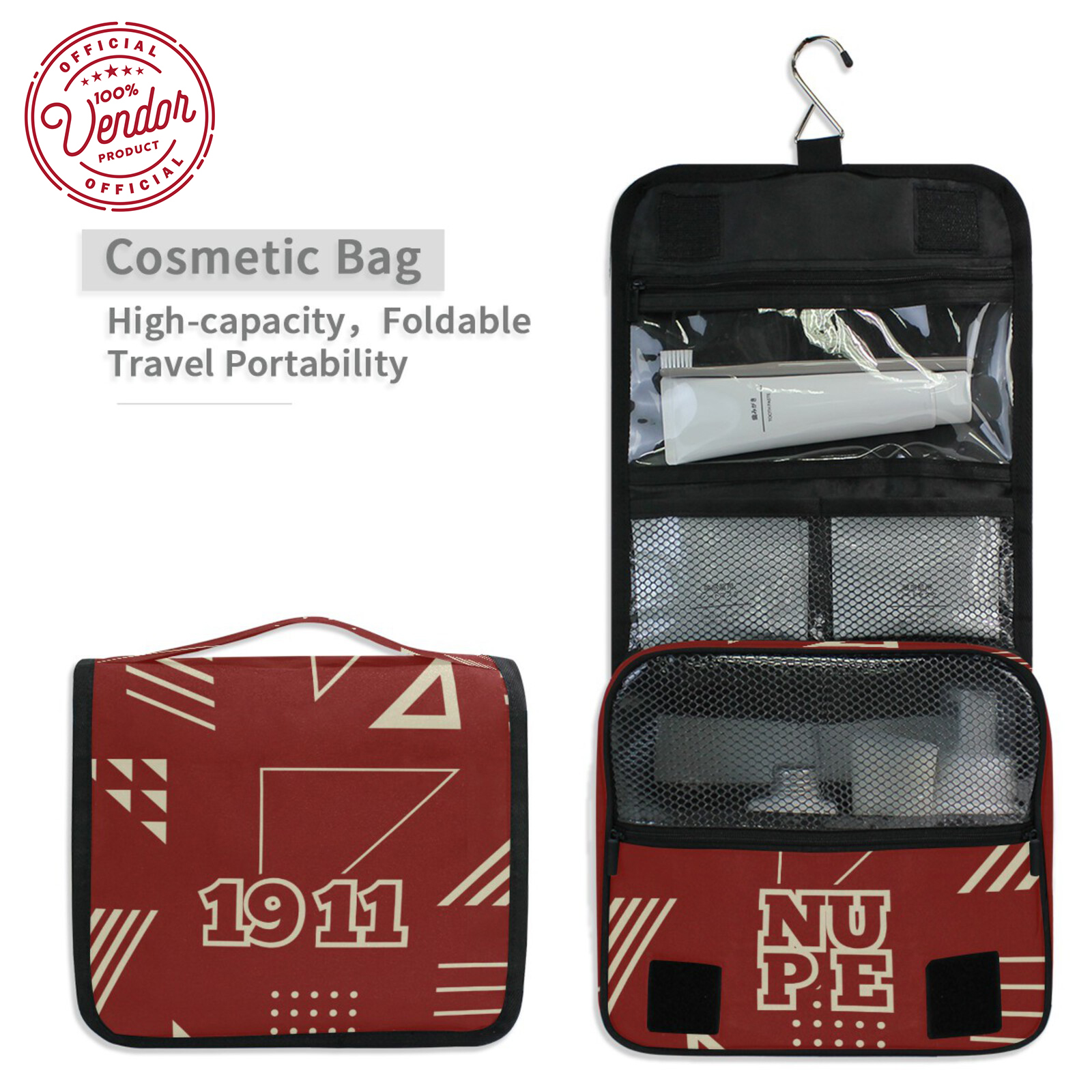 DURABLE: Decorated with permanent, eco-friendly fabric printing, permanently dyed into the fibers, that will not fade, crack or bleed and lasts permanently, even with repeated use and cleanings, withstanding the normal wear and tear of a toiletry pouch.