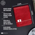 - Made from eco-friendly leather with debossed Greek letters and an official silicone patch
