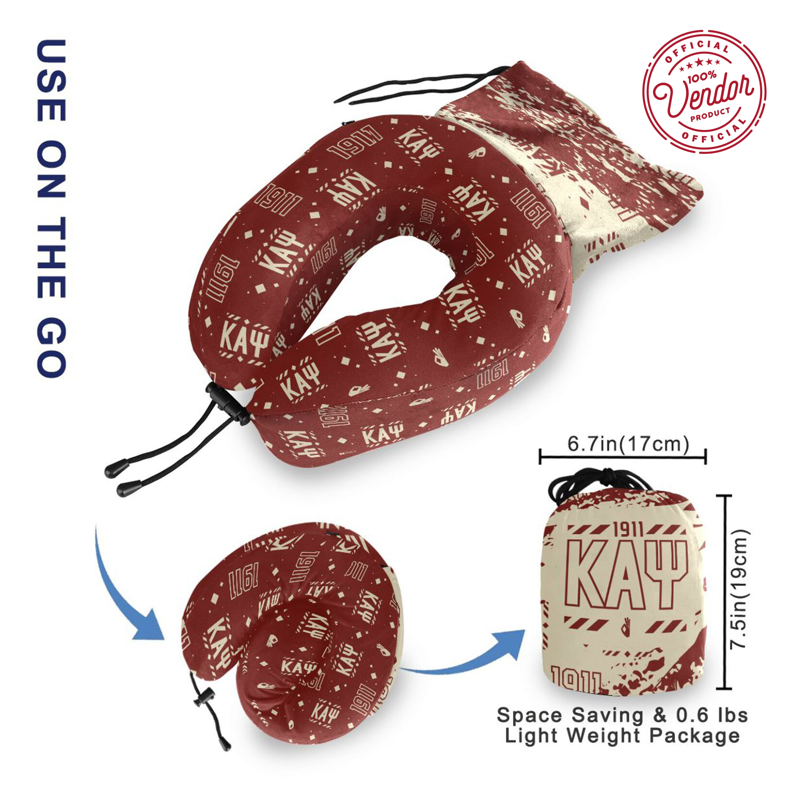 This U-shaped travel neck pillow also features an adjustable drawstring tie, ensuring a secure fit around your neck at all times. For those who are always on the move, it comes with a storage bag, ensuring hassle-free storage and packing. With its compact size, measuring just 6.7 x 7.5 inches (or 17cm x 19cm), it won't take up unnecessary space and can be effortlessly attached to carry-on bags or suitcases. The Kappa Alpha Psi travel neck pillow seamlessly combines uncompromised comfort with responsible design, making it an essential accessory for the modern, traveling brother of Kappa Alpha Psi.