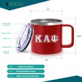 Constructed from high-quality 18/8 stainless steel, this mug is designed to withstand daily wear. The double-wall insulation maintains optimal beverage temperatures, while the splash-proof lid with a sliding opening allows for direct sipping or use with the included straw. With a 14 oz capacity and dimensions of 3.94 inches in width and 4.21 inches in height, it is portable and fits comfortably in most cup holders. The easy-to-clean surface ensures effortless maintenance, with hand washing recommended to preserve the vibrant exterior finish. We are proud to be Official Vendors of Kappa Alpha Psi Fraternity, Inc. and offer you a growing collection of designs