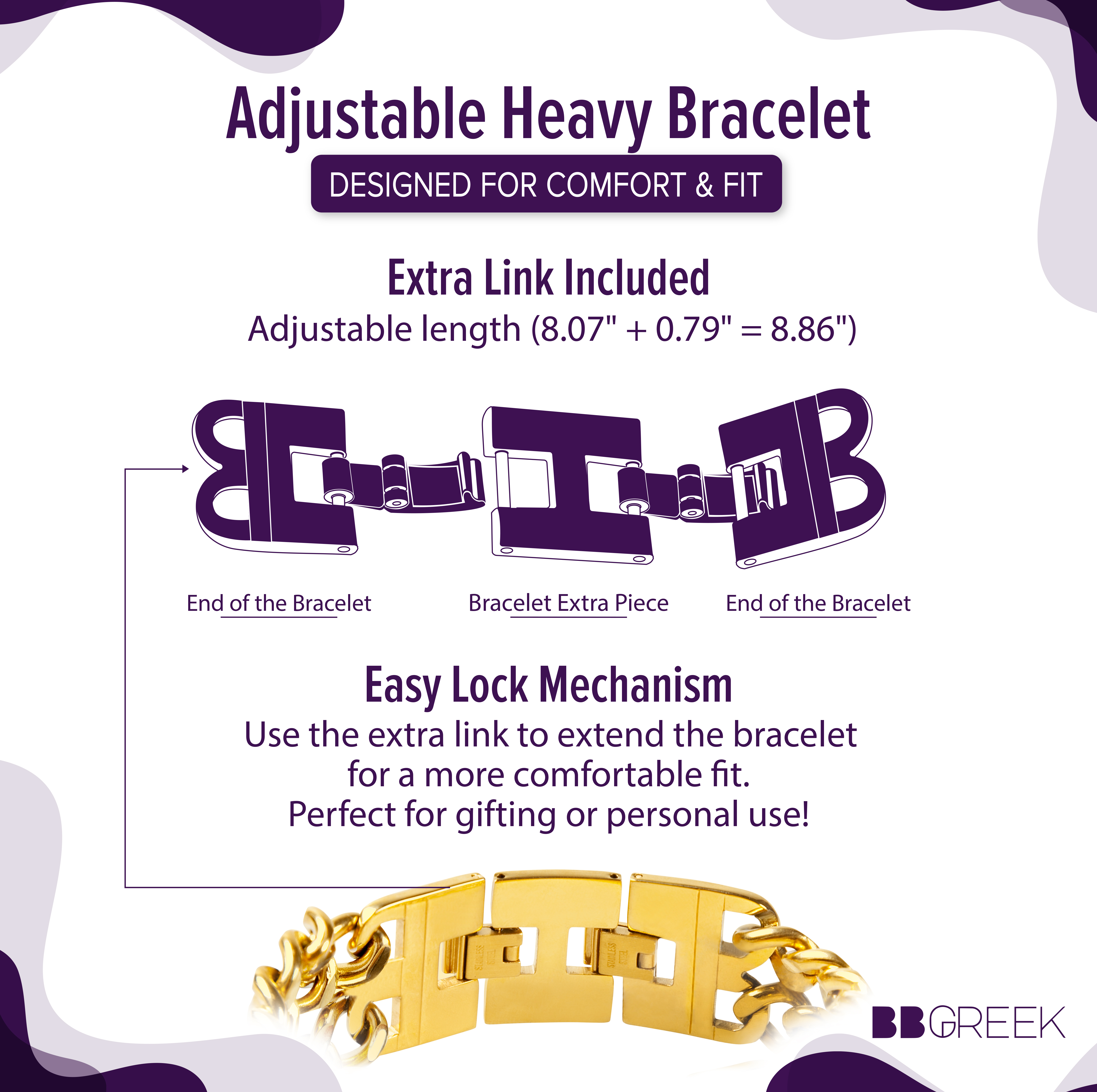 ADJUSTABLE FIT: Measuring 8.07 inches with an additional piece extending it to 8.86 inches, this bracelet is designed to accommodate different wrist sizes. The secure clasp ensures a comfortable and reliable fit for everyday wear.