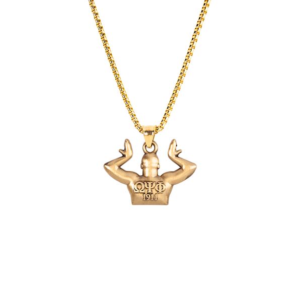 The pendant measures 2.48 inches tall, 1.5 inches wide, and 3mm thick, offering a substantial look without added weight. It comes with a 3.5mm thick chain that adjusts to 24 inches, making it versatile for different preferences. The necklace arrives in a velvet pouch, ready for storage or gifting. Built for durability and comfort, this piece is suitable for daily wear and adds to any collection of Omega Psi Phi accessories.