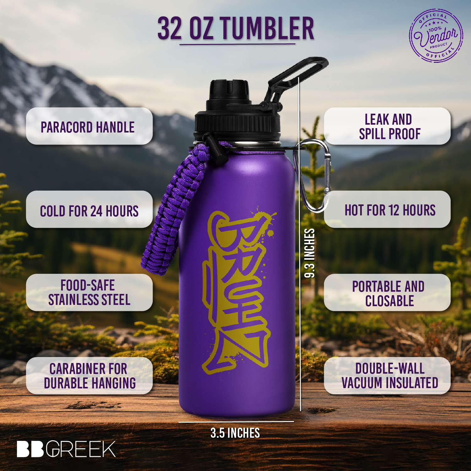 DURABLE CONSTRUCTION: This 32 oz tumbler is crafted from high-quality stainless steel, ensuring long-lasting durability. The powder-coated exterior and laser-engraved Omega Psi Phi design resist fading, peeling, and wear, making it ideal for everyday use.