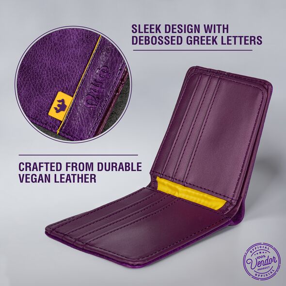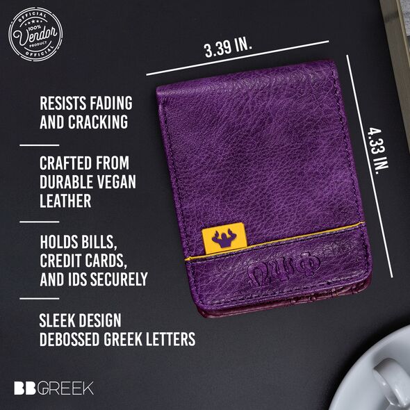 Inside, you'll find an array of card slots, a clear ID window, and ample space for cash. It's not just a stylish accessory; it's a highly functional tool to help you stay organized effortlessly in every aspect of life, whether you're attending fraternity events, professional meetings, or just going about your day. Each time you reach for this wallet, you're proudly displaying your loyalty to fraternity and living out the core values of Omega Psi Phi.