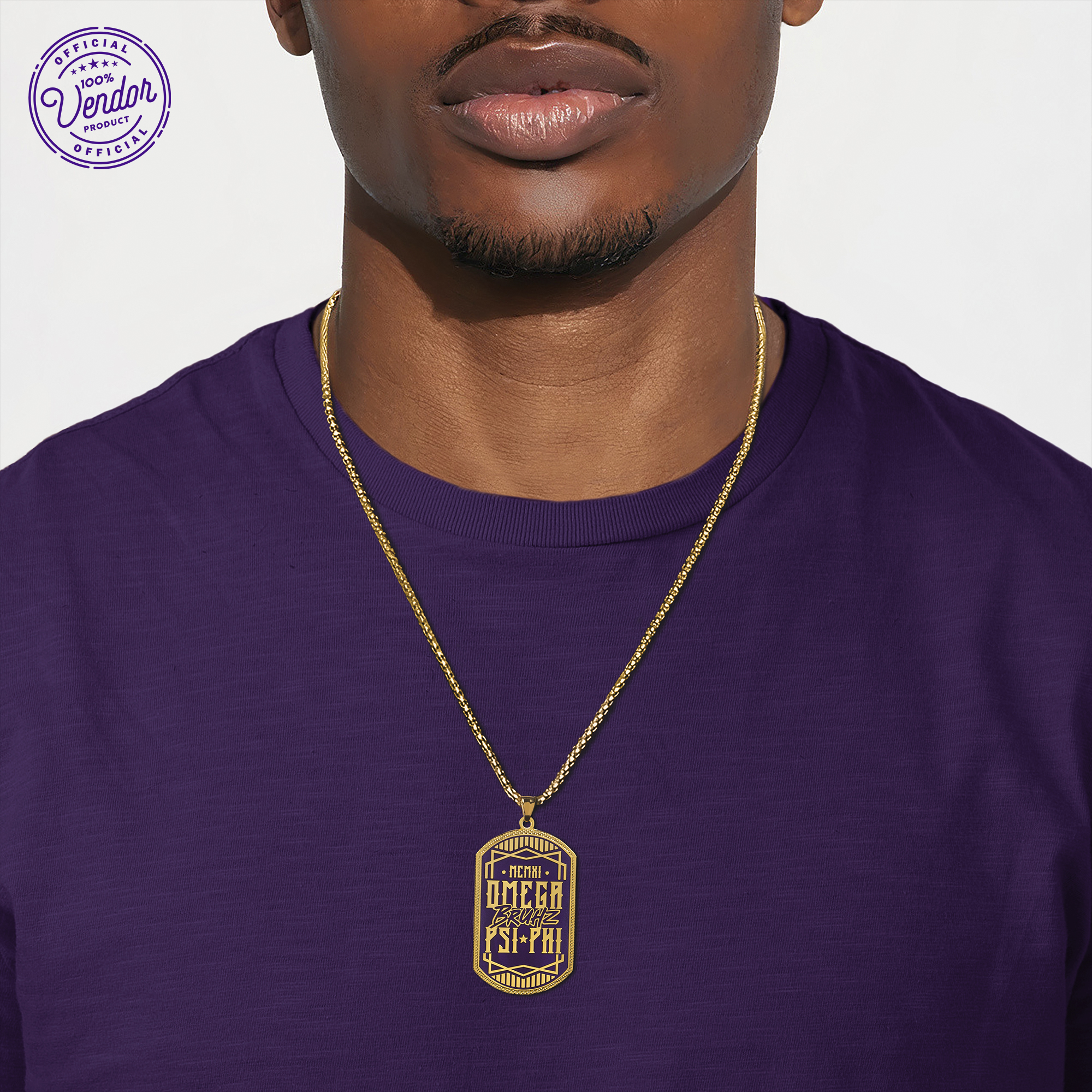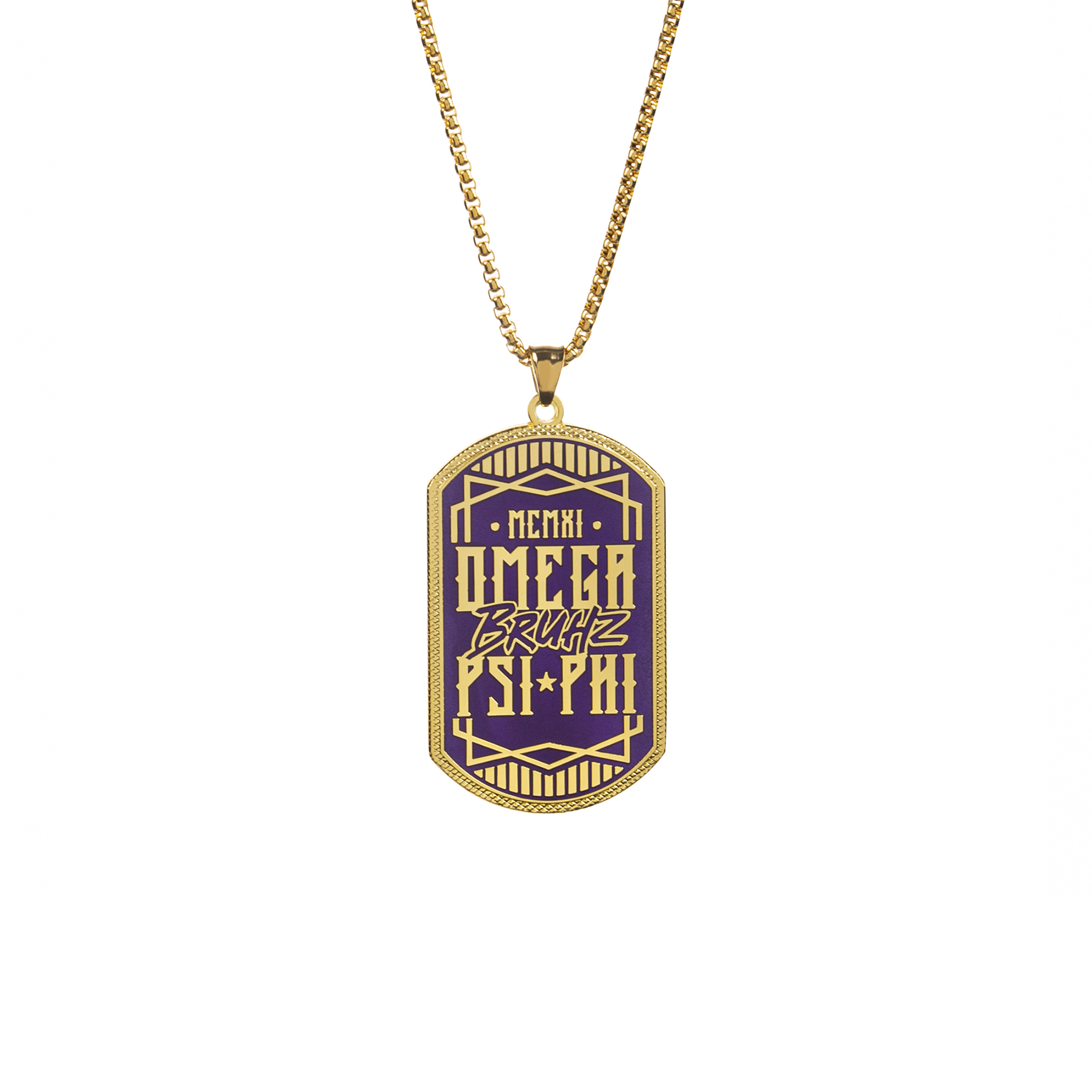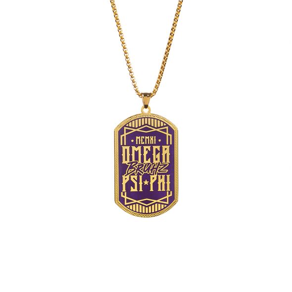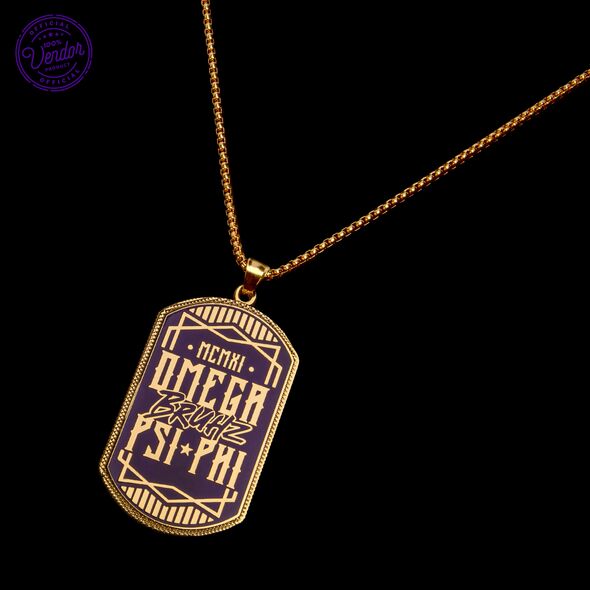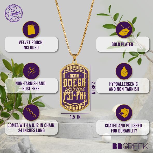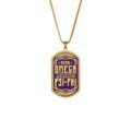 This Omega Psi Phi dog tag is crafted from durable zinc alloy, featuring a single-sided 2D soft enamel design with intricate details. The front is polished with an antique zinc plating, while the back showcases raised text and sandpoints for added texture. This dog tag is designed to maintain its quality and appearance over time, offering a lasting representation of Omega Psi Phi fraternity pride.