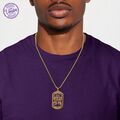 The tag comes with a 24-inch TRO 6 chain, also plated in antique zinc, providing a comfortable fit for everyday wear. Measuring 63 x 38.1mm and 2.5mm in thickness, the dog tag is built for durability. Each piece is carefully designed and packaged in a purple velvet pouch for easy storage and protection.