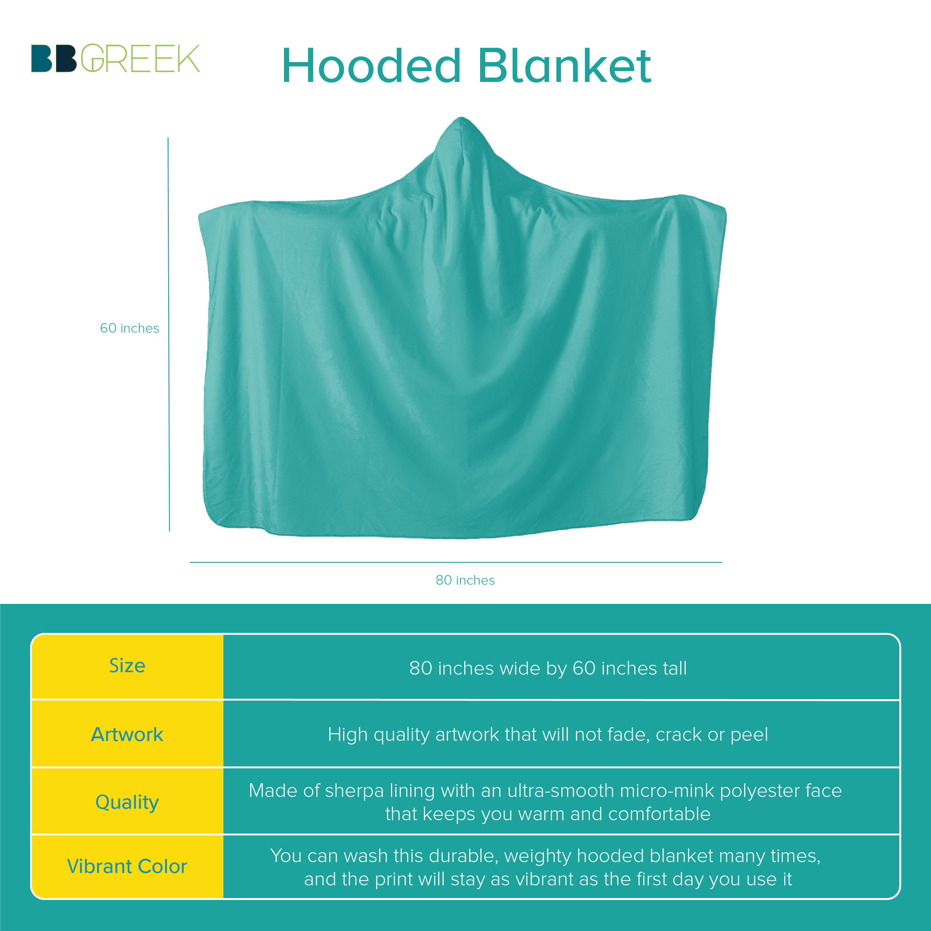 The size is 80 inches wide by 60 inches tall. You can wash this durable, weighty hooded blanket many times, and the print will stay as vibrant as the first day you use it. Our hooded blankets are printed and sewn in the United States. This is an original design, and not an unauthorized replica or counterfeit item.