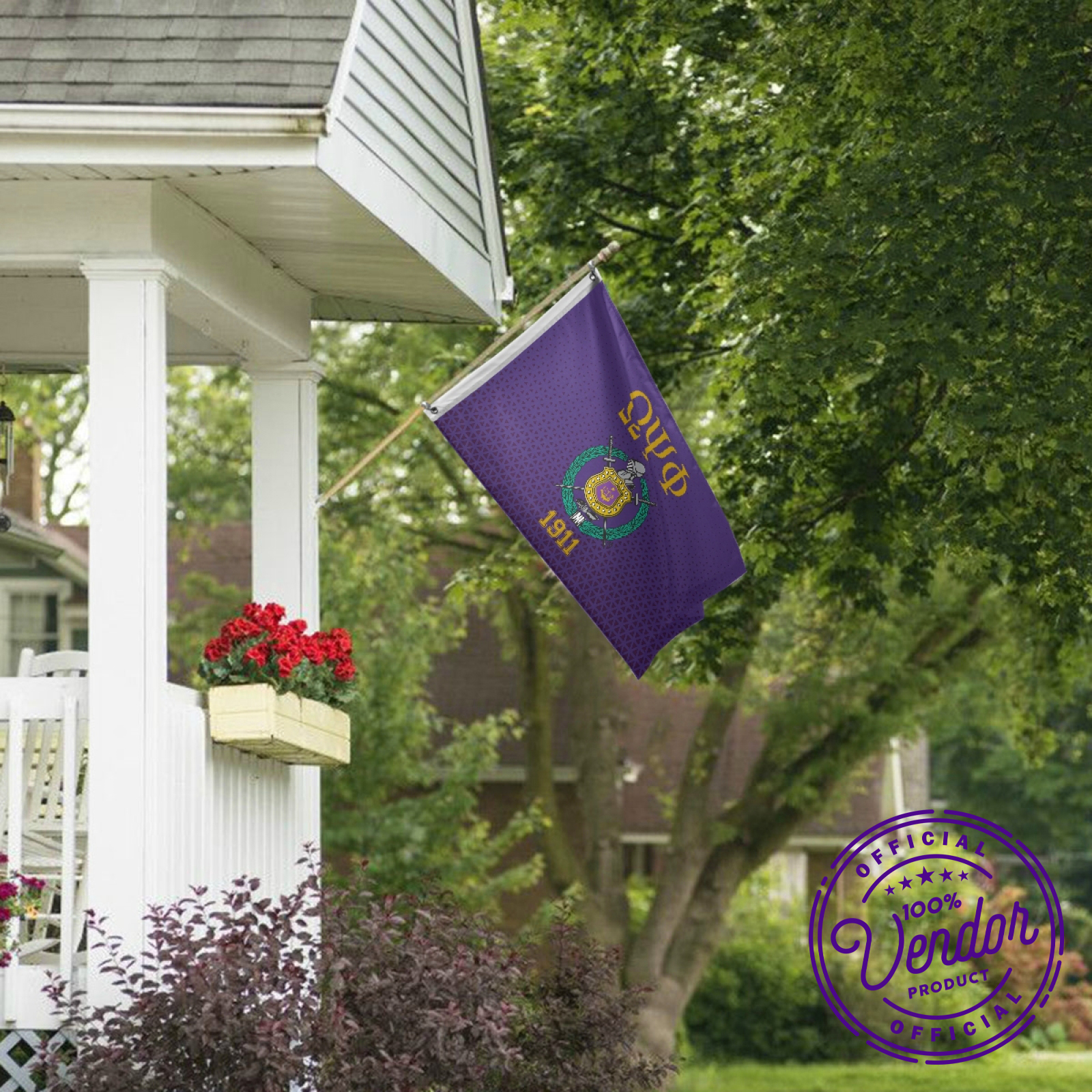 Omega Psi Phi - Wall Flag / Large Banner - 3 x 5 - Large Letters and Coat of Arms (Shield)
