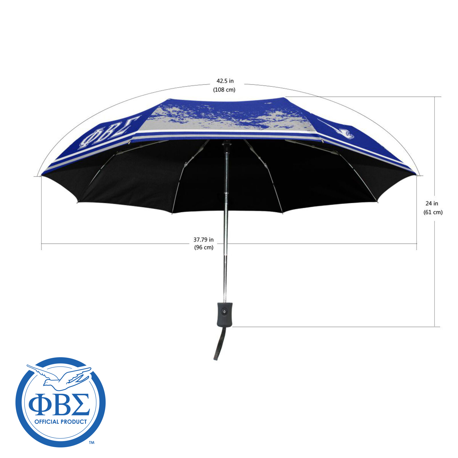 Our Phi Beta Sigma Vintage Badge umbrella is crafted to provide durability and convenience, featuring a distinctive design that celebrates fraternity heritage. Constructed from waterproof polyester, it offers solid rain protection and is built to last. The automatic open-and-close mechanism allows for easy operation with just one hand, making it a practical choice for those on the go. This umbrella folds down to a compact 11 inches, allowing for easy storage, yet opens up to a 42.5-inch canopy with a robust 37.79-inch shaft for comprehensive coverage.