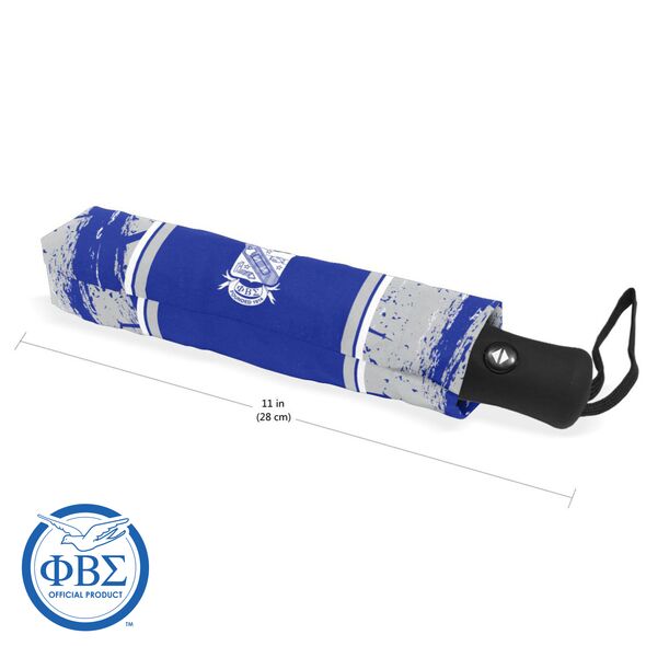 Our Phi Beta Sigma umbrella merges functionality and fraternity representation, designed with high-quality waterproof polyester for durability. The automatic open-and-close feature offers quick access, ideal for unexpected rain. Compact at 11 inches when folded, it easily fits in a bag yet provides a full 42.5-inch canopy when opened.