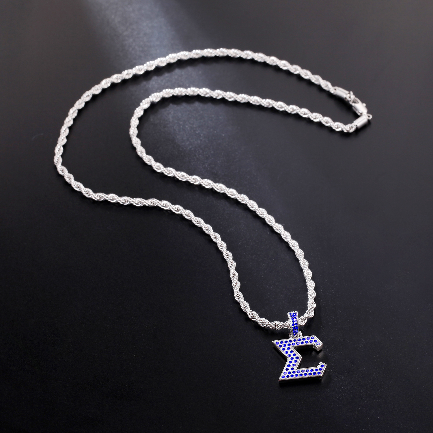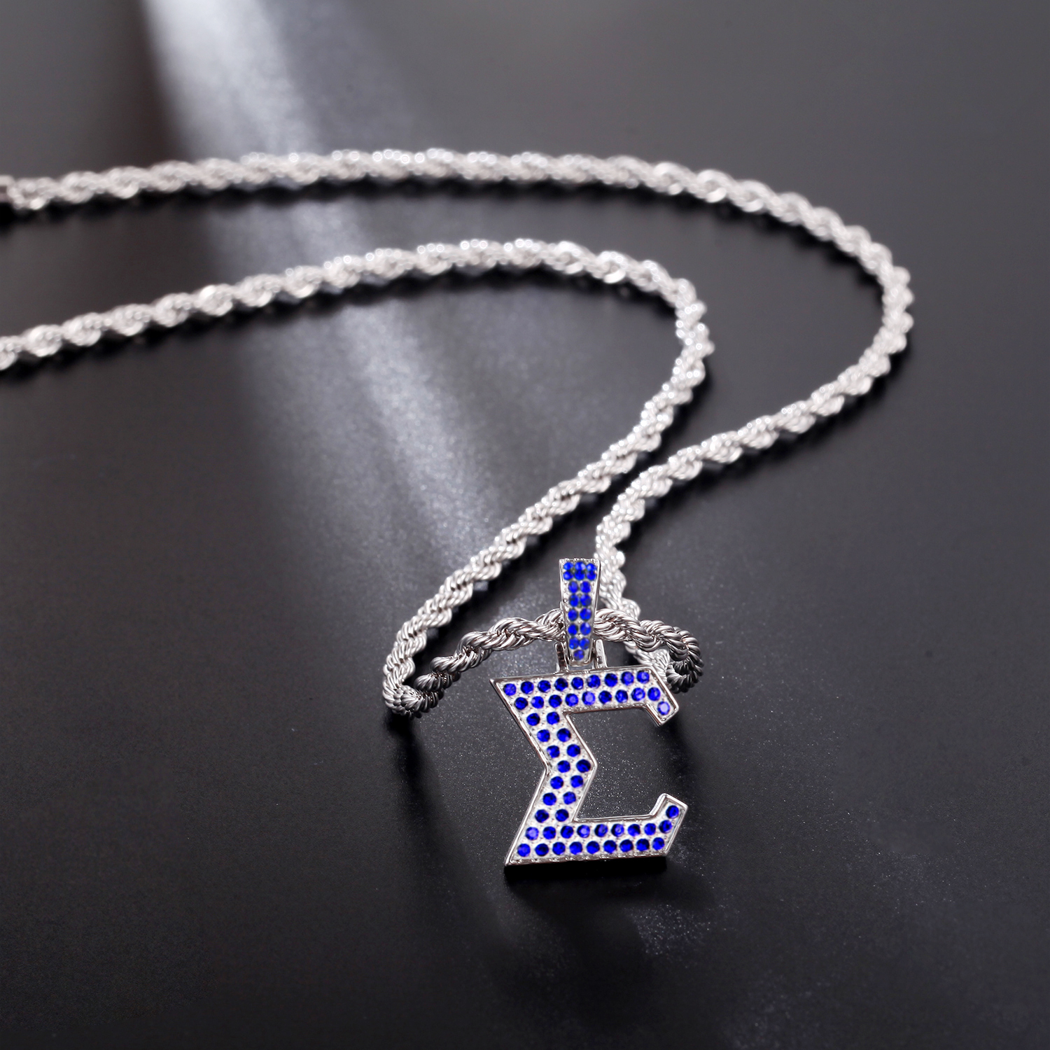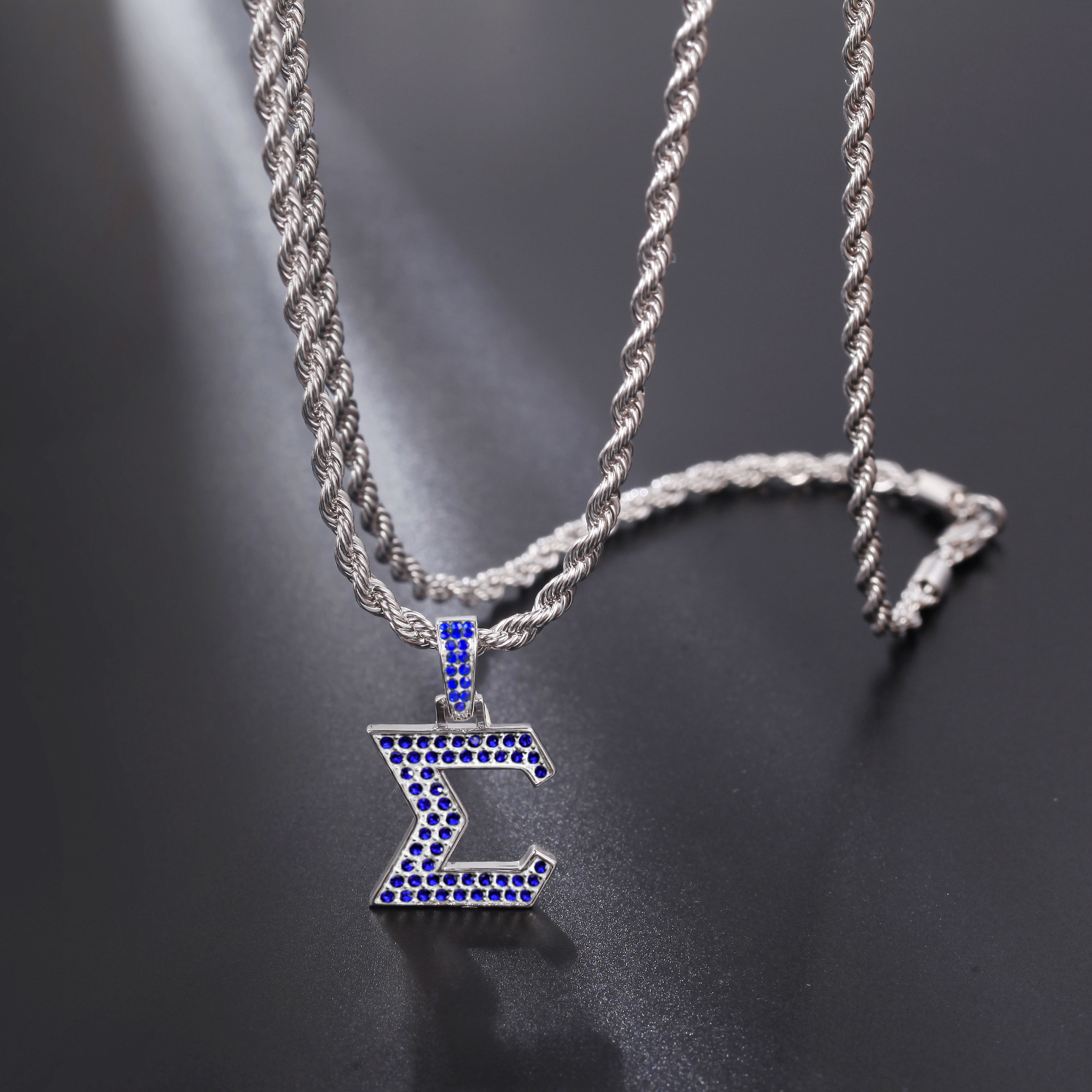 The pendant is made from non-allergenic stainless steel and finished with an anti-tarnish silver coating for a skin-safe and lasting finish. The mirror-polished back adds a subtle shine, while the crystal-encrusted front showcases the fraternity’s colors and symbols in a stylish form. The chain offers a secure and versatile fit for various personal styles.