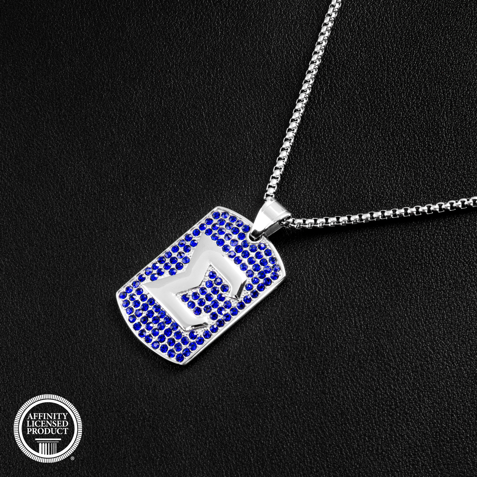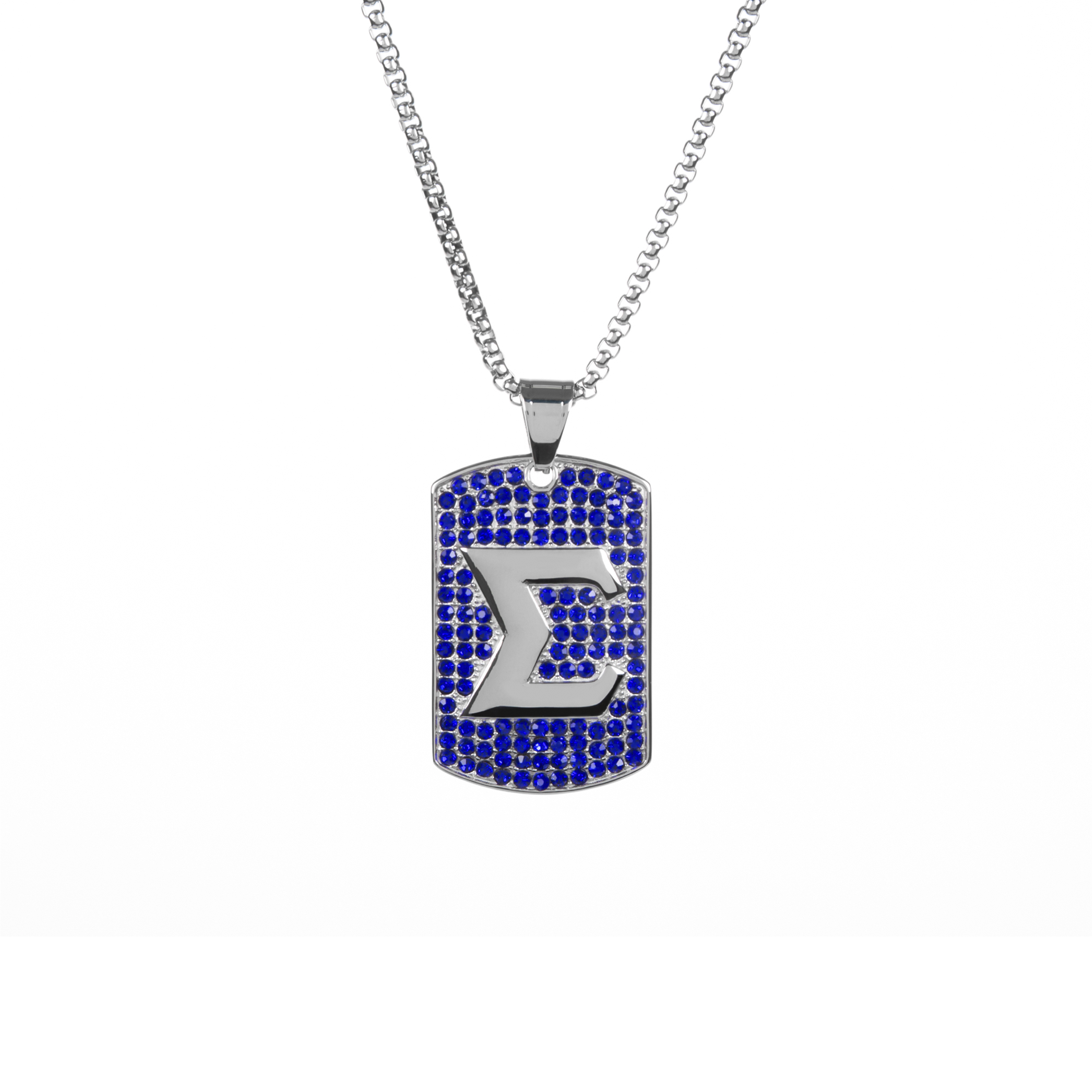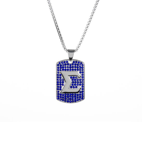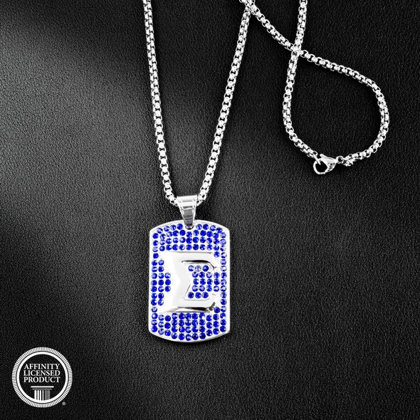 The pendant is made from non-allergenic stainless steel and finished with an anti-tarnish silver coating for a skin-safe and lasting finish. The mirror-polished back adds a subtle shine, while the crystal-encrusted front showcases the fraternity’s colors and symbols in a stylish form. The chain offers a secure and versatile fit for various personal styles.