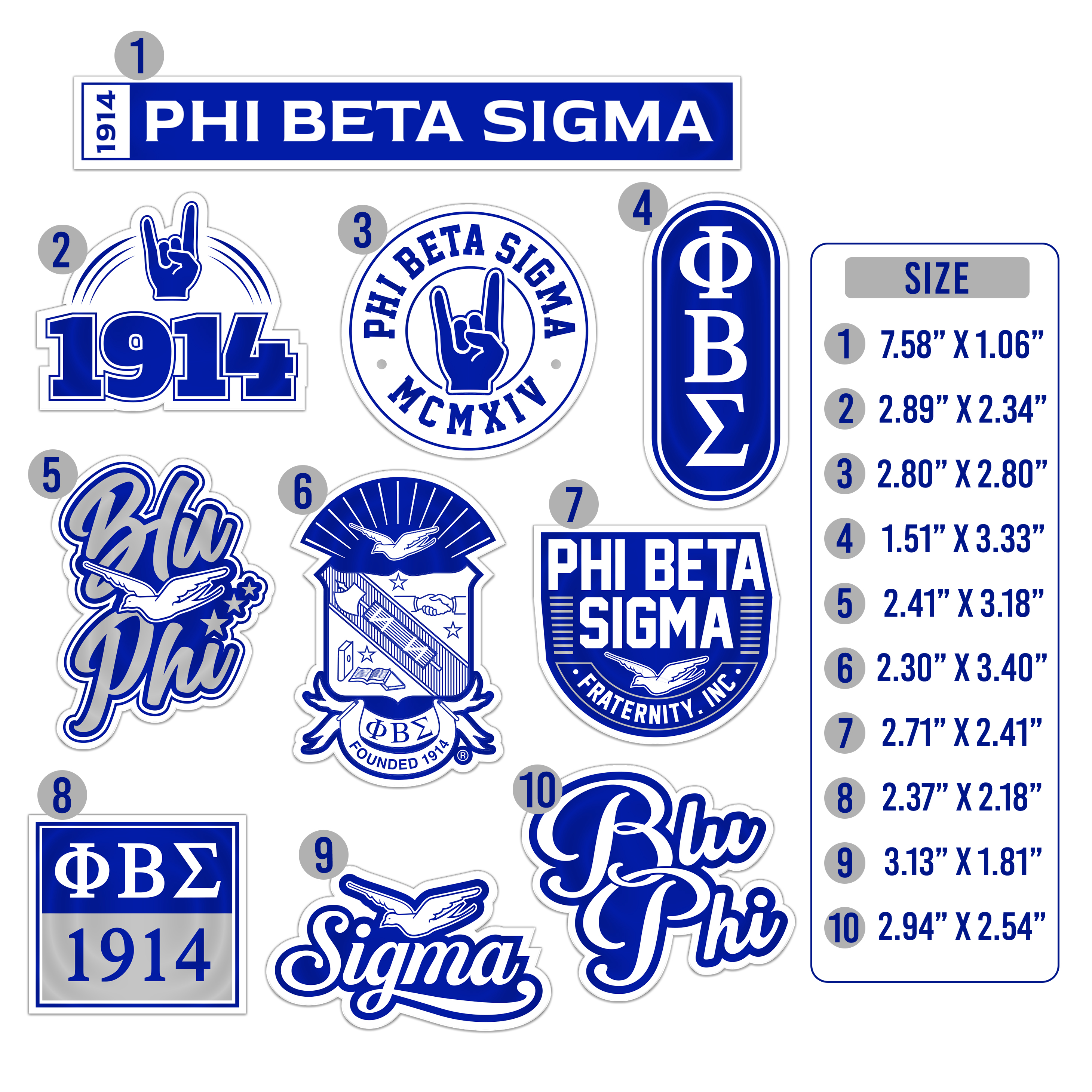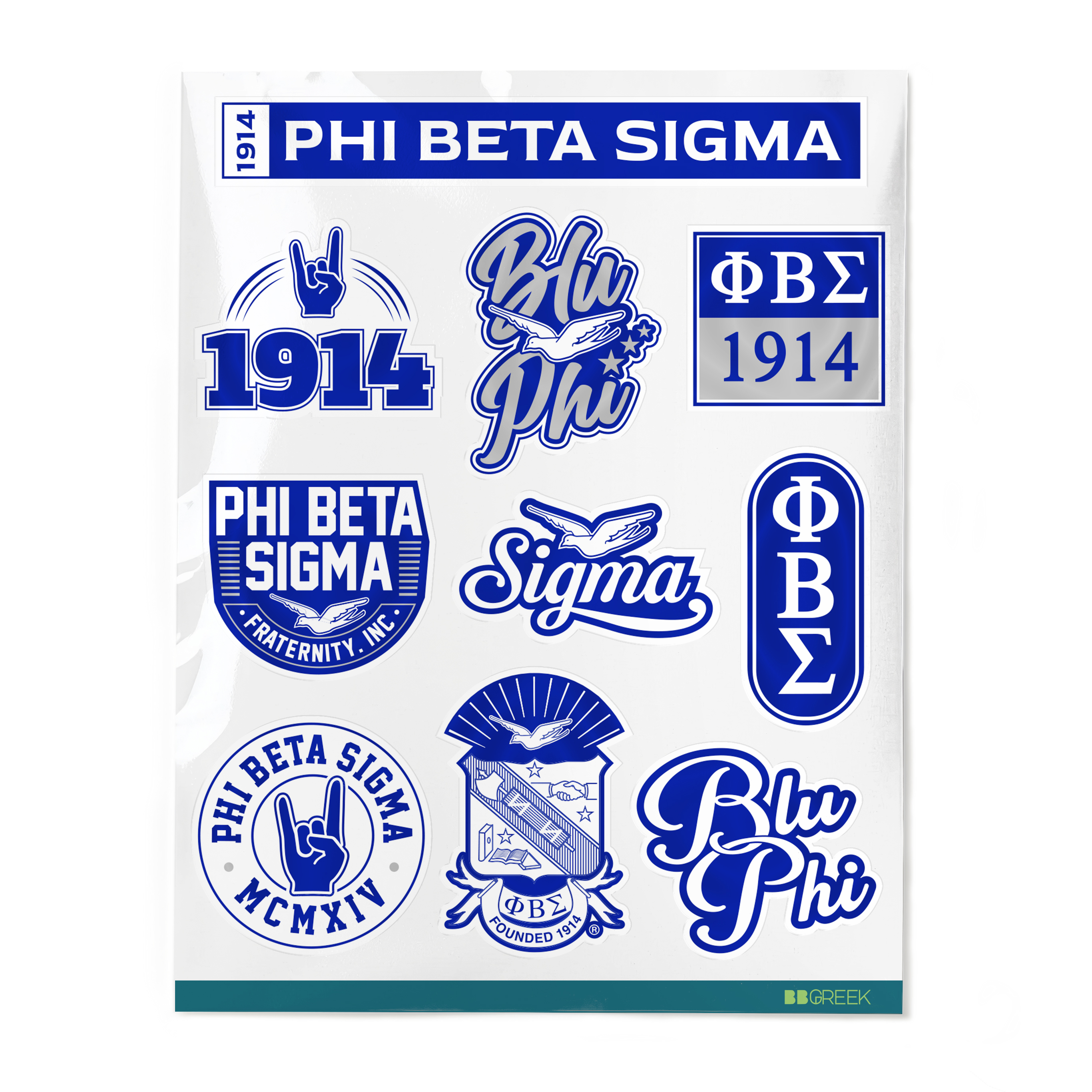 Set of 10 Stickers: This pack includes 10 Phi Beta Sigma stickers arranged on an 8.5 x 11-inch sheet, offering a variety of designs to suit different applications while maintaining a compact size.