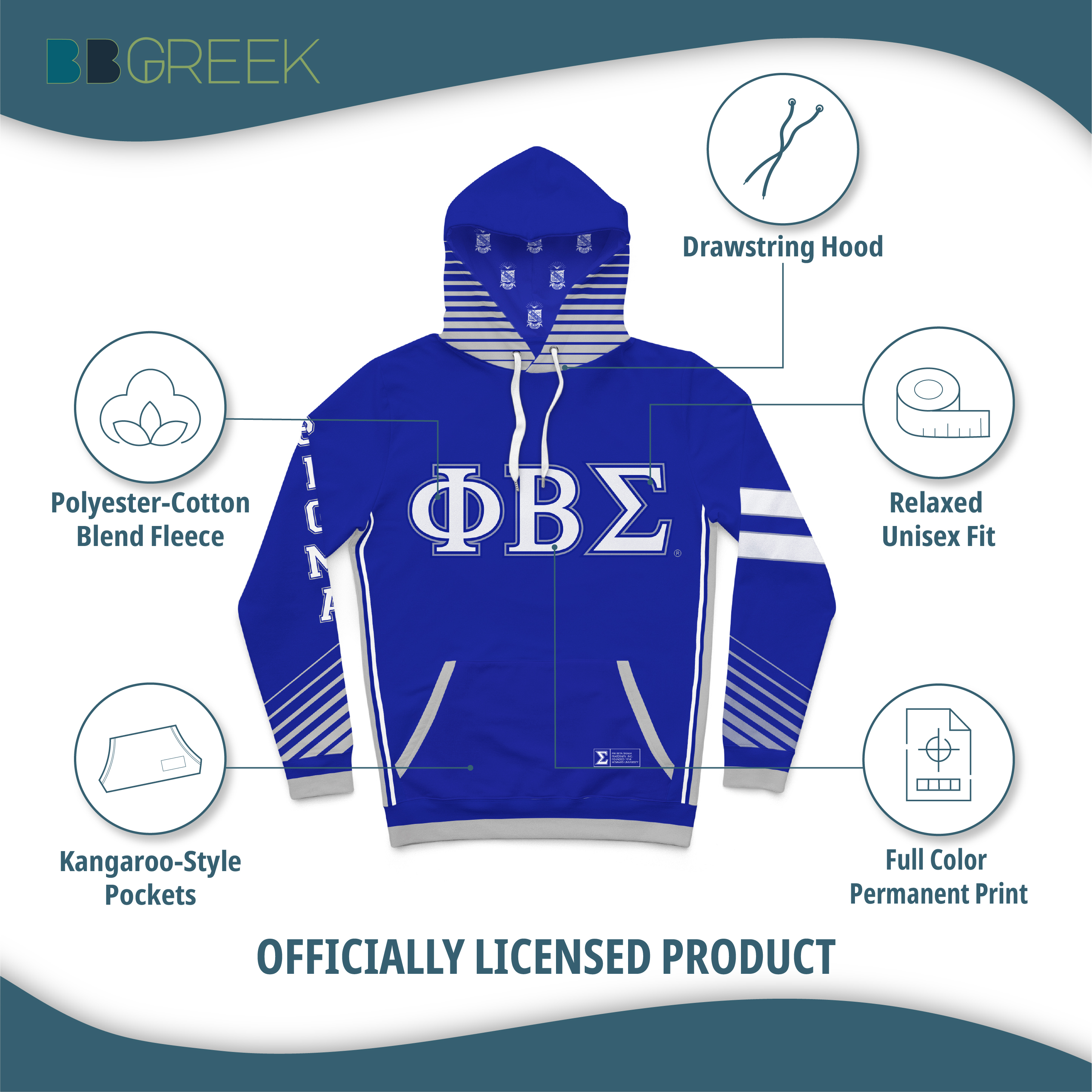Phi Beta Sigma Fraternity - Hooded Sweatshirt - Varsity Stripes