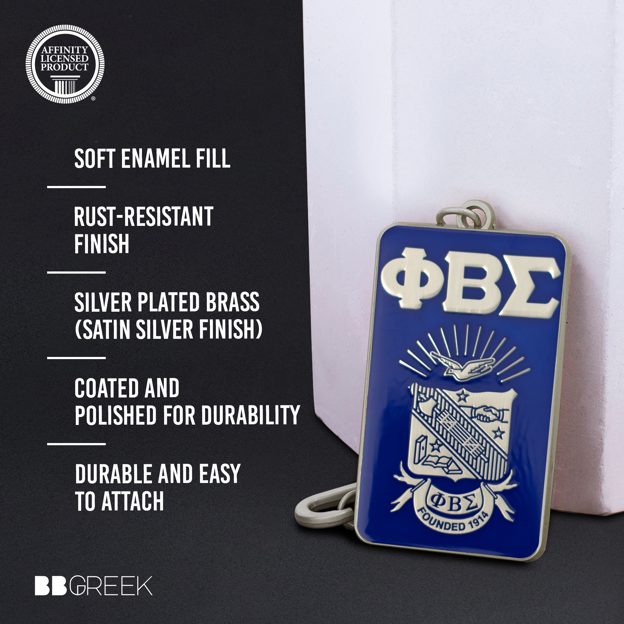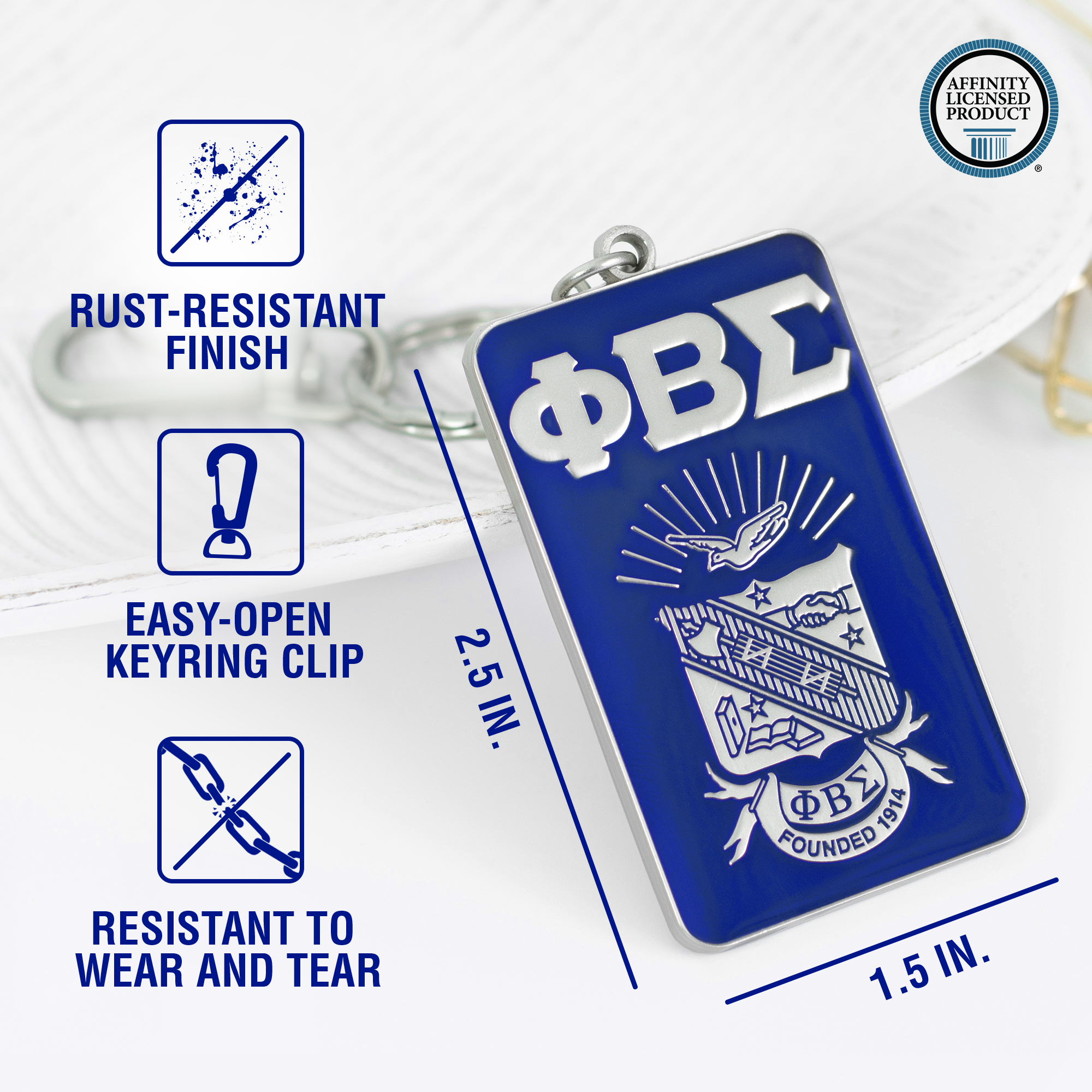 The silver-metal keychain is designed with the fraternity's Greek letters and coat of arms. The rust-free finish and weight of this keychain will give you that quality feel. It is carefully sandblasted for durability without compromising design.