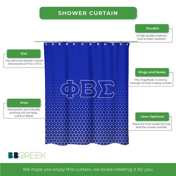 This Phi Beta Sigma shower curtain offers both visual appeal and practical use. The durable material and long-lasting print make it a reliable Phi Beta Sigma accessory for home decor. Easy to install and maintain, it adds a meaningful touch to your bathroom while reflecting fraternity in a subtle, everyday way. Ideal for use in fraternity houses, dorms, or personal residences.