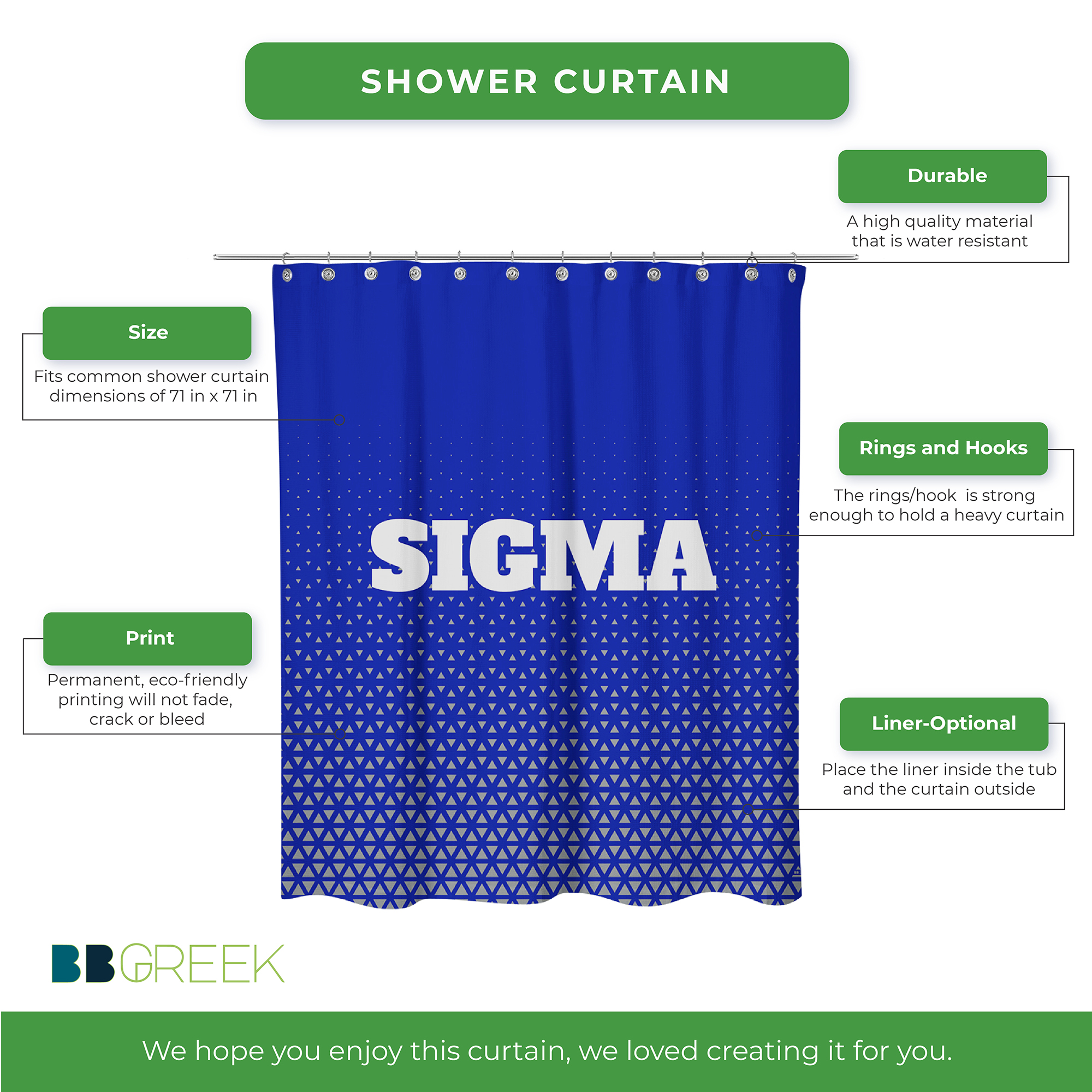This Phi Beta Sigma shower curtain offers both visual appeal and practical use. The durable material and long-lasting print make it a reliable Phi Beta Sigma accessory for home decor. Easy to install and maintain, it adds a meaningful touch to your bathroom while reflecting fraternity in a subtle, everyday way. Ideal for use in fraternity houses, dorms, or personal residences.