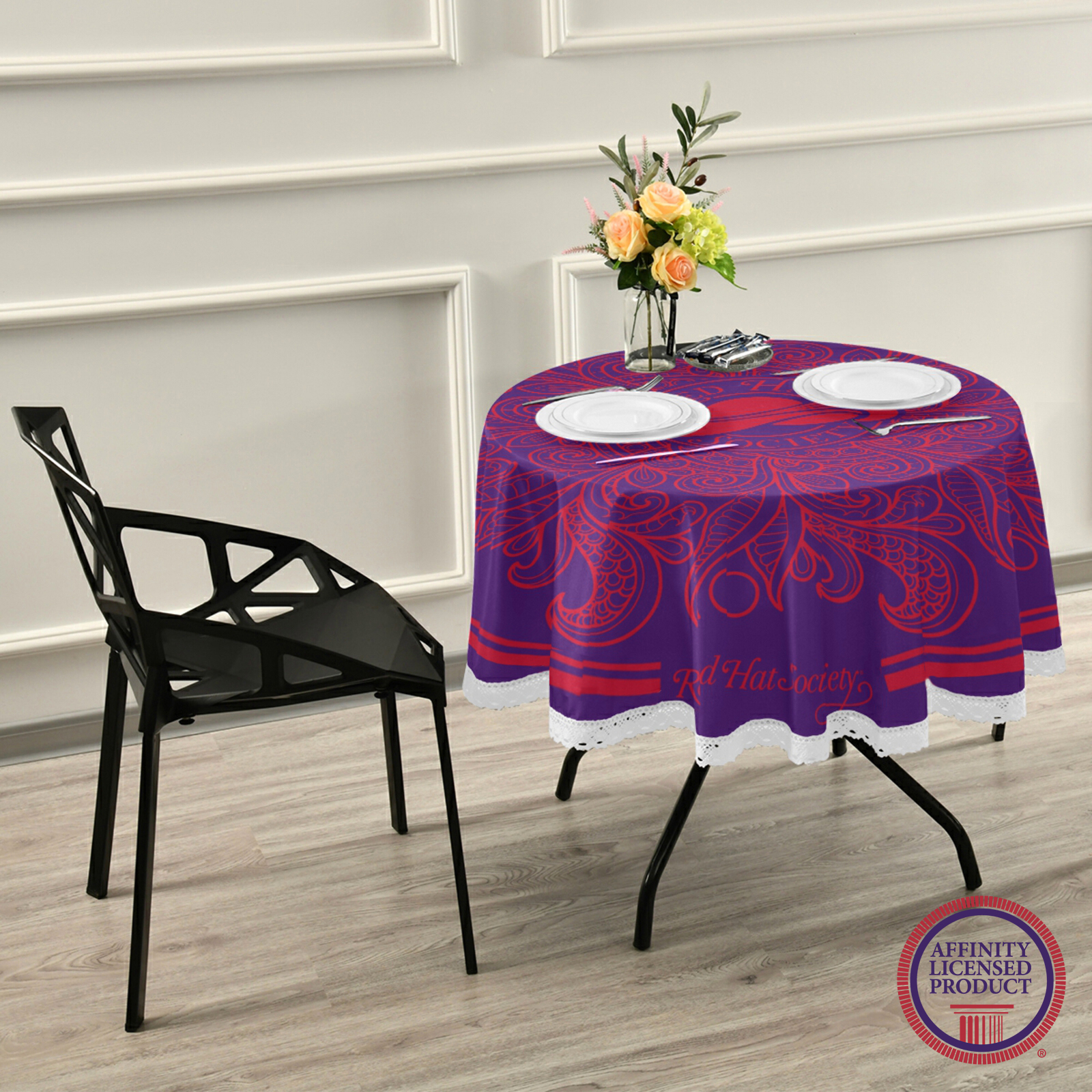 This Red Hat Society table cloth is made of high-quality and eco-friendly polyester that is wrinkle and color fade resistant with a one-sided print. It has a soft and smooth surface that gives an exquisite feel when touched. Suitable for both indoor and outdoor everyday use.