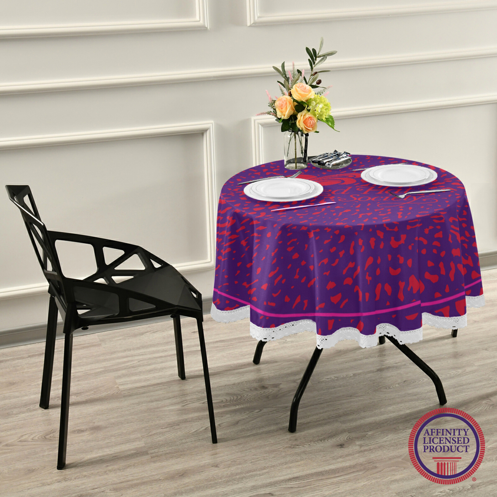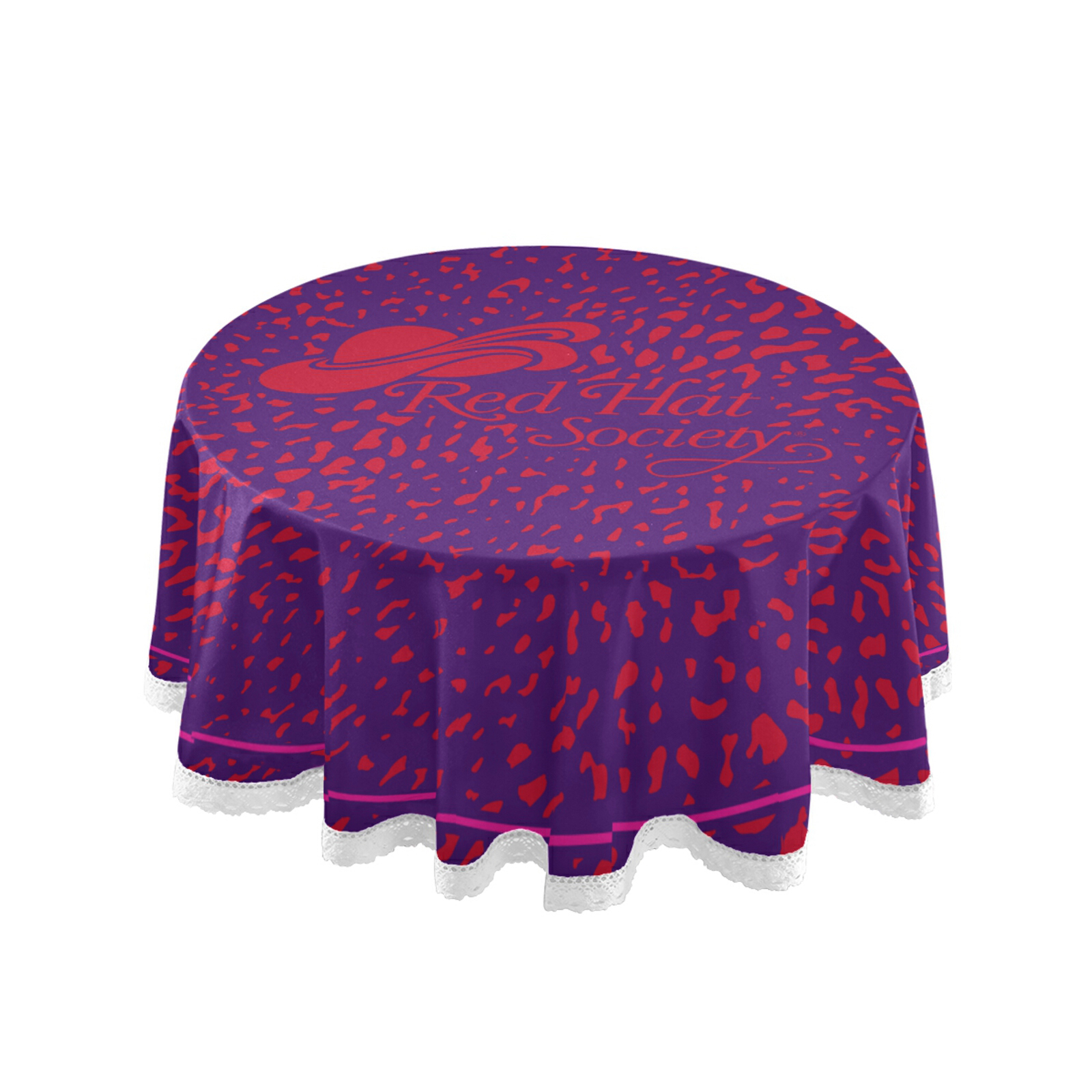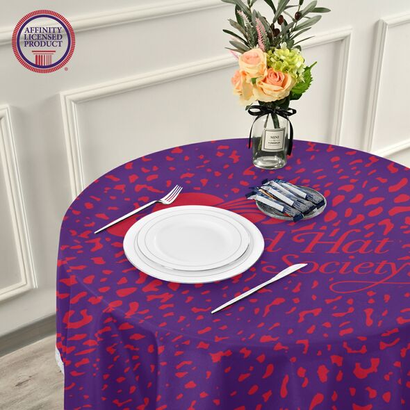 This Red Hat Society table cloth is made of high-quality and eco-friendly polyester that is wrinkle and color fade resistant with a one-sided print. It has a soft and smooth surface that gives an exquisite feel when touched. Suitable for both indoor and outdoor everyday use.