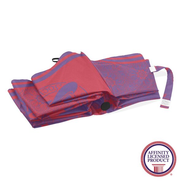 Featuring a vibrant Mandala design in high-quality digital print, this umbrella is crafted to resist fading. Compact at 11 inches when folded, it opens to a 42.5-inch canopy, providing ample coverage. As an officially licensed product, it reflects the Red Hat Society’s values of elegance and durability.