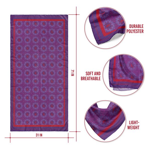 The scarf’s generous dimensions of 70 inches long by 35 inches wide allow for multiple styling options, whether worn as a shawl, wrap, or accessory. Its lightweight construction makes it suitable for all seasons, providing an airy yet stylish look. The soft fabric ensures a comfortable fit without feeling heavy or restrictive.