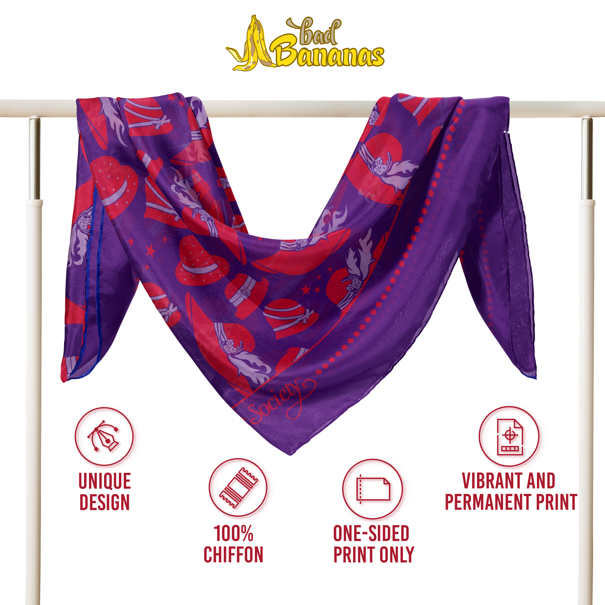 Crafted from crepe chiffon, this scarf offers a smooth, breathable texture that enhances comfort. The vibrant print is permanently embedded in the fabric to maintain its striking appearance over time. Hand washing is recommended to preserve the quality and longevity of the material. Designed for everyday wear, this scarf blends durability with a lightweight feel for effortless styling.