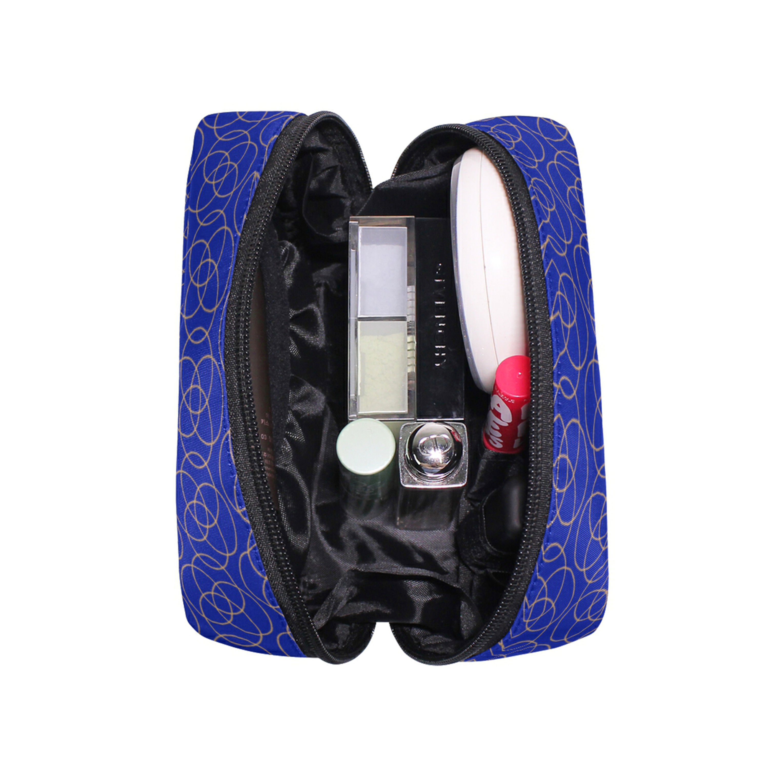 LINED: Lined in a black laminate material, for added durability. Can be used as a pencil case, cosmetic bag or travel bag. This is a soft cosmetic case, also used to store jewelry or other accessories. It has plenty of compartments for storage, and folds flat.