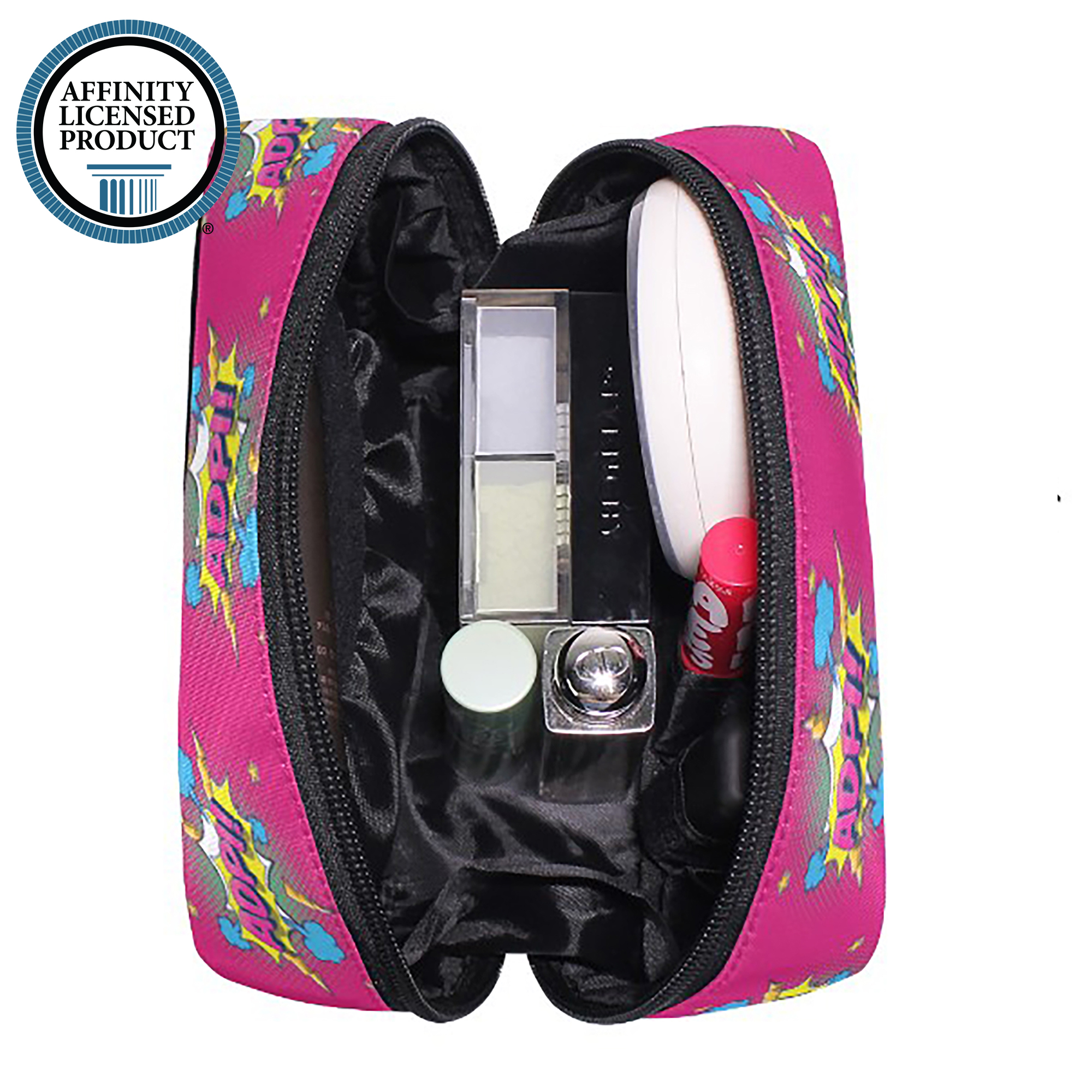 Delight someone you adore with this awesome cosmetic case. Performing double duty as a carrier for makeup, or the random knick knacks that find their way into a purse or backpack, this bag is sure to delight. We promise you won't find anything like this in stores and the person fortunate enough to be bestowed with such a gift will always smile when they use it.