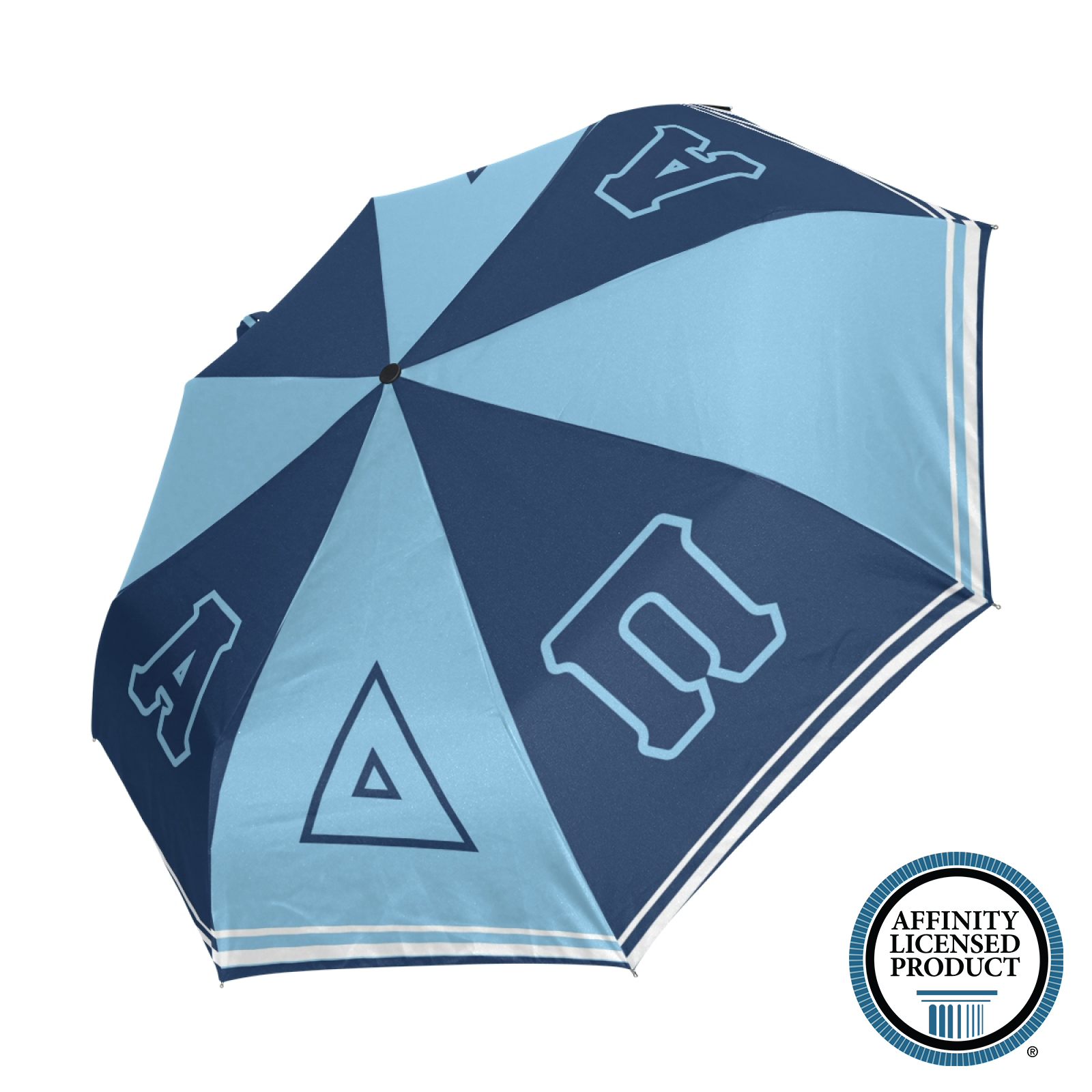 With a high-quality digital print of the Alpha Delta Pi Greek letters, this umbrella is designed to resist fading, maintaining its vibrant appearance over time. It includes a matching cover for safe storage, making it a durable and stylish addition to everyday essentials, crafted to uphold Alpha Delta Pi values and quality standards.