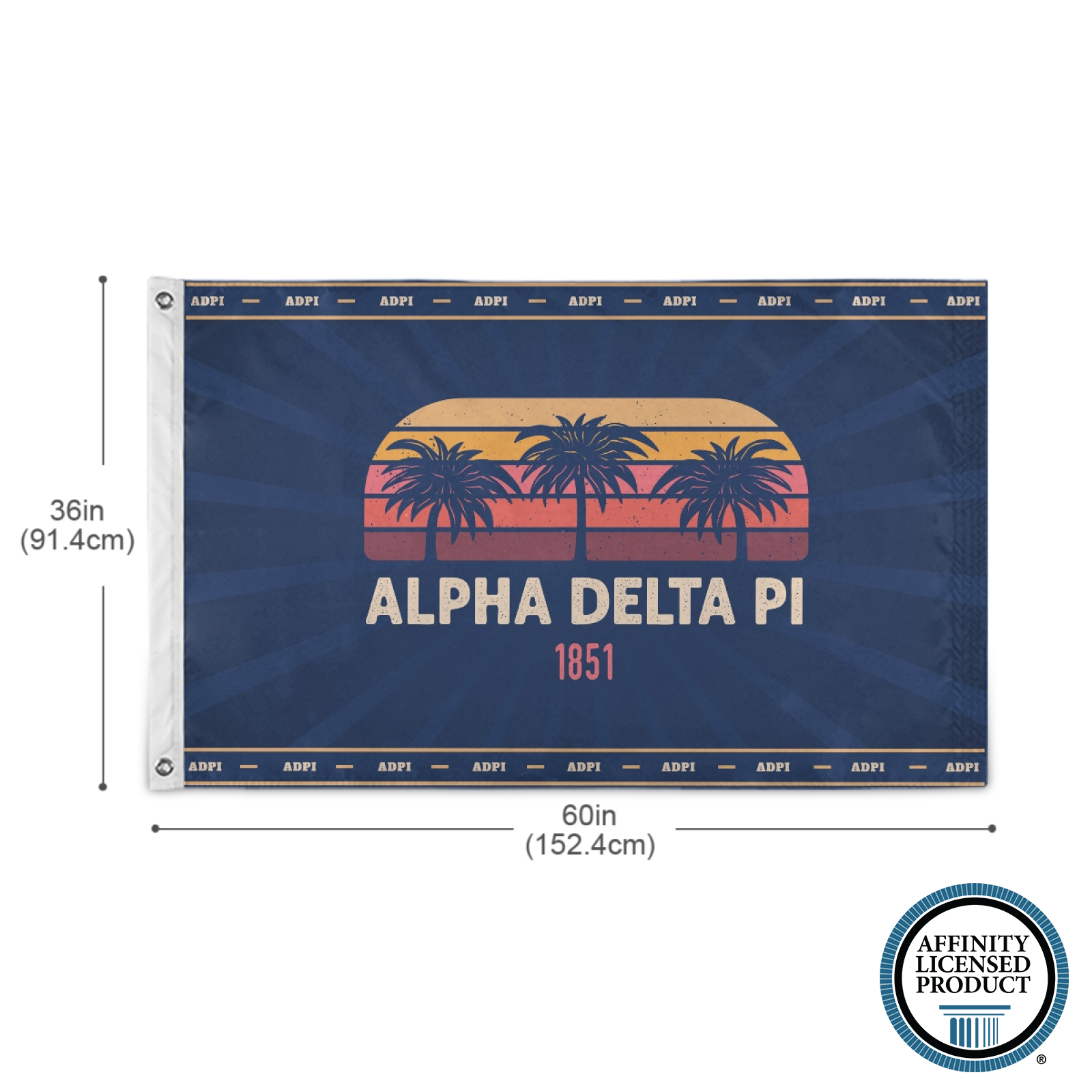Alpha Delta Pi (ADPi) - Large Wall Flag / Banner - 3 x 5 Feet - Retro Palms