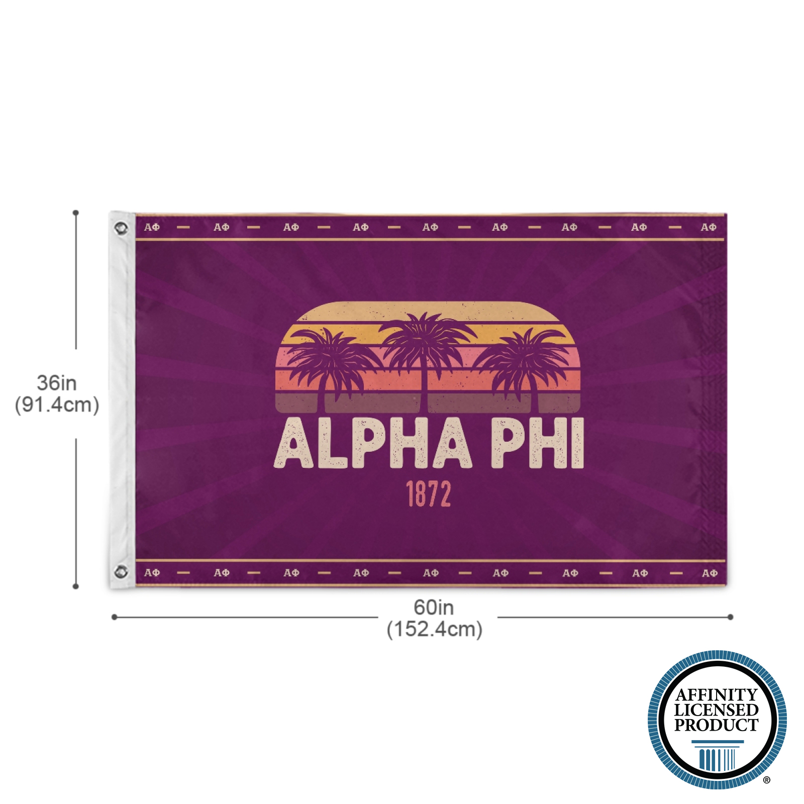Alpha Phi - Large Wall Flag / Banner - 3 x 5 Feet - Retro Palms