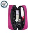 LINED: Lined in a black laminate material, for added durability. Can be used as a pencil case, cosmetic bag or travel bag. This is a soft cosmetic case, also used to store jewelry or other accessories. It has plenty of compartments for storage, and folds flat.