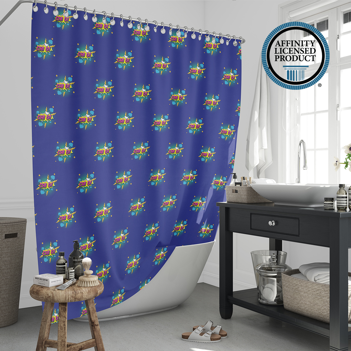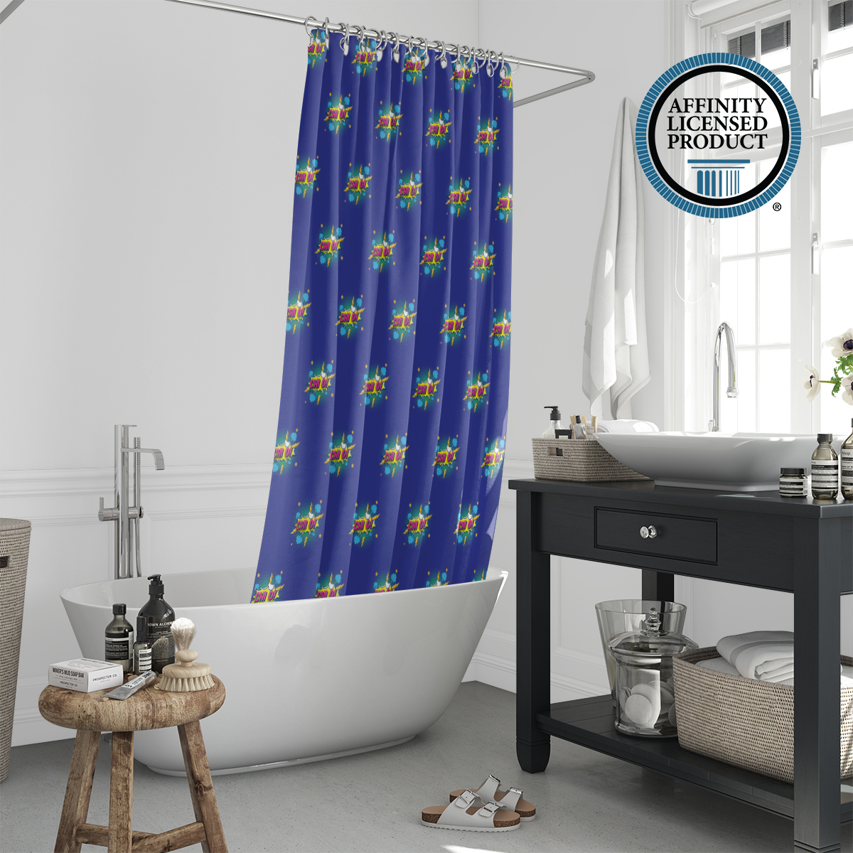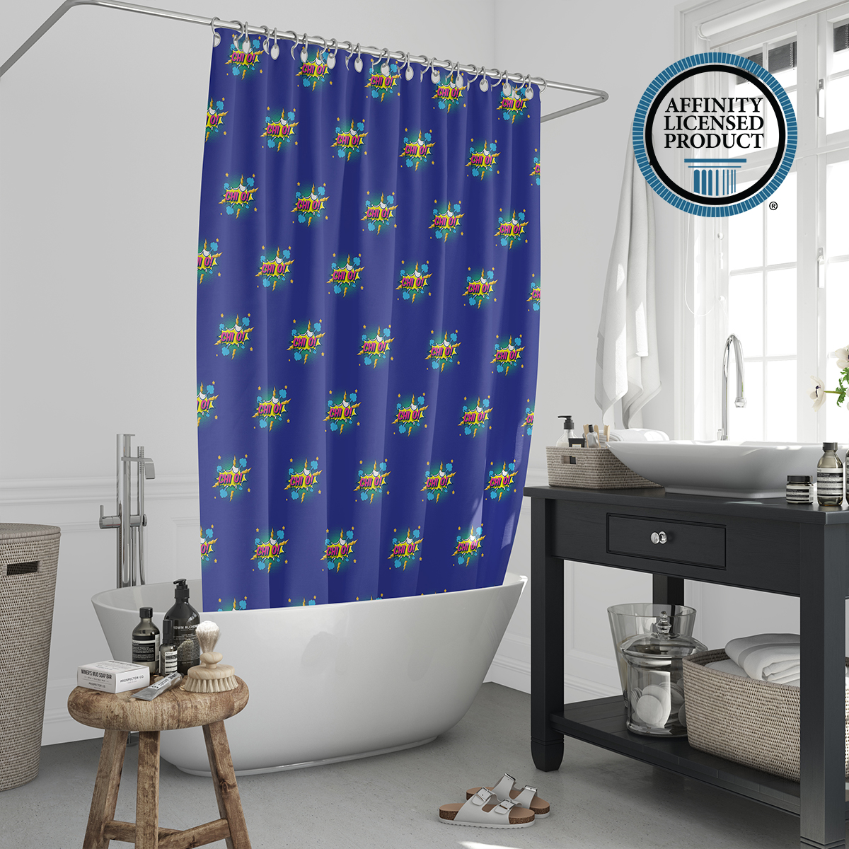 This Chi Omega shower curtain features a design that reflects the identity of Chi Omega Sorority. Sized at 71 x 71 inches, it fits most standard bathtubs and showers. Made from 100% polyester, the curtain has a water-resistant surface and a vibrant, eco-friendly print that is permanently dyed into the fabric. It is suitable for daily use and comes with installation rings for convenience. Please note that a liner is not included.