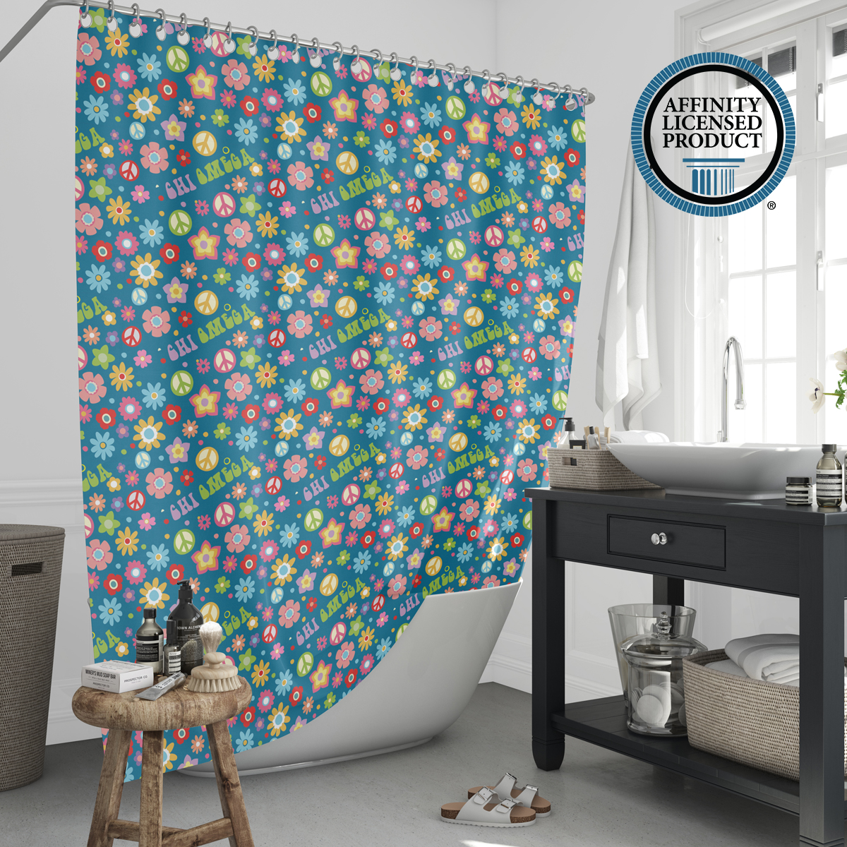 This Chi Omega shower curtain offers both visual appeal and practical use. The durable material and long-lasting print make it a reliable Chi Omega accessory for home decor. Easy to install and maintain, it adds a meaningful touch to your bathroom while reflecting sorority in a subtle, everyday way. Ideal for use in sorority houses, dorms, or personal residences.