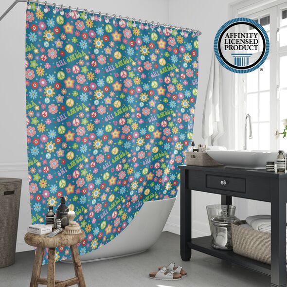 This Chi Omega shower curtain features a design that reflects the identity of Chi Omega Sorority. Sized at 71 x 71 inches, it fits most standard bathtubs and showers. Made from 100% polyester, the curtain has a water-resistant surface and a vibrant, eco-friendly print that is permanently dyed into the fabric. It is suitable for daily use and comes with installation rings for convenience. Please note that a liner is not included.