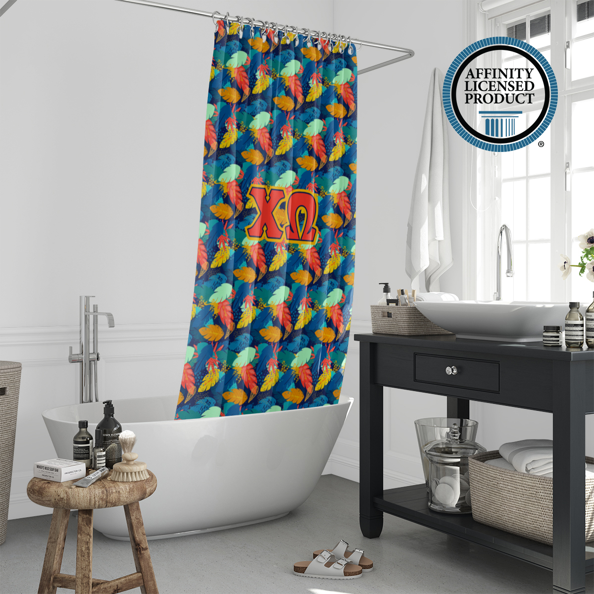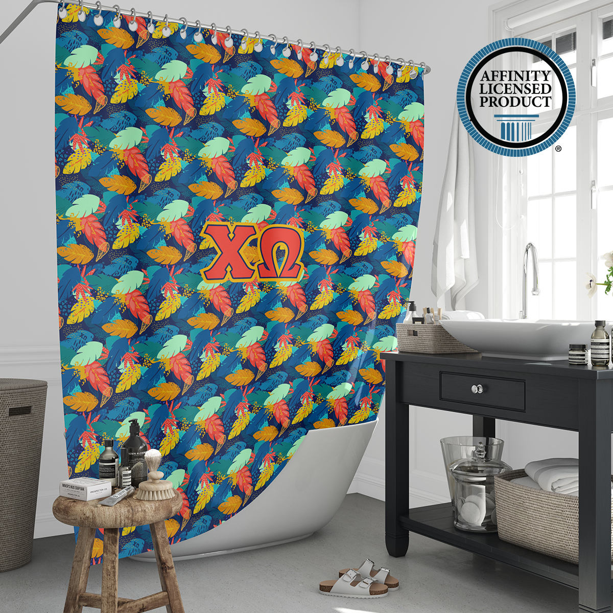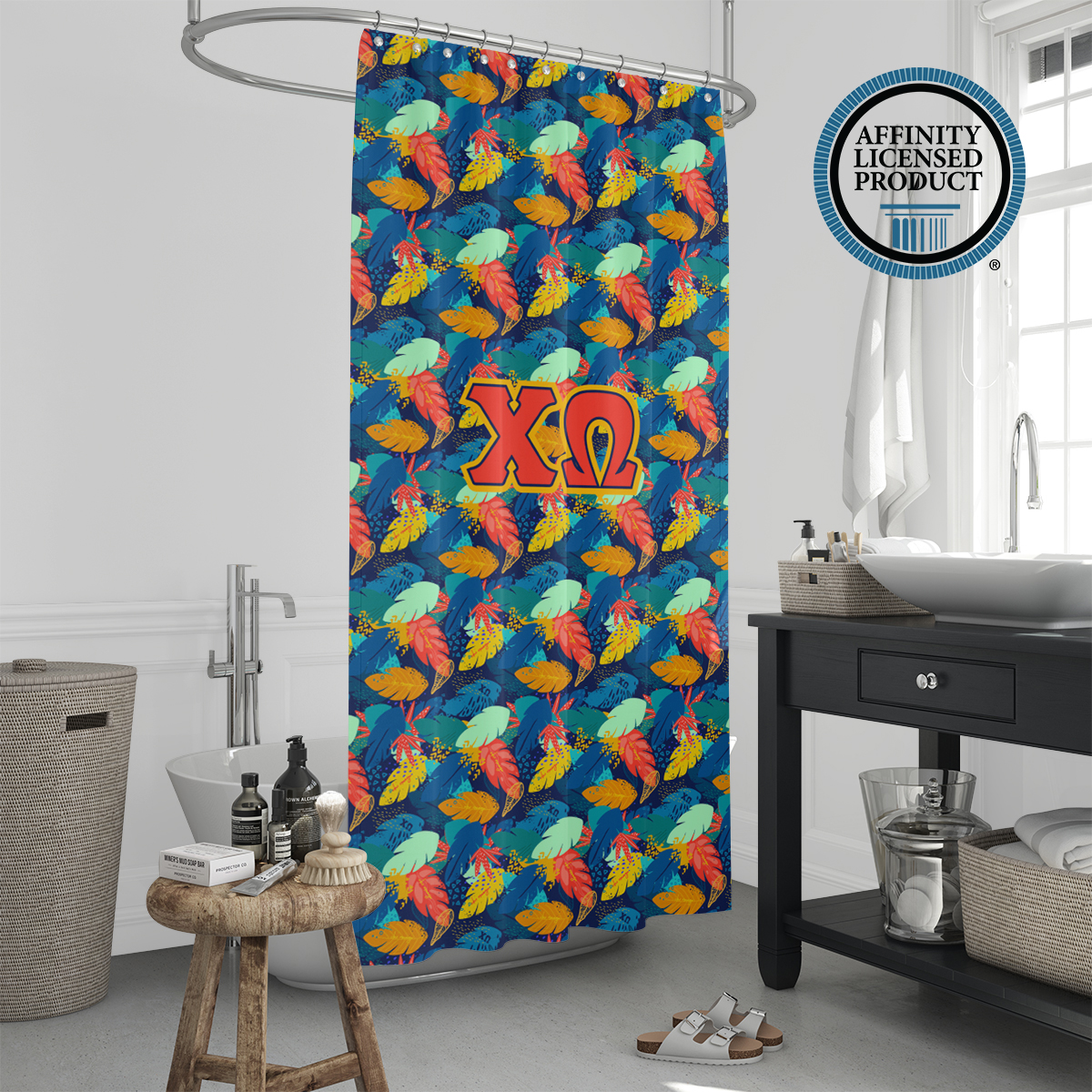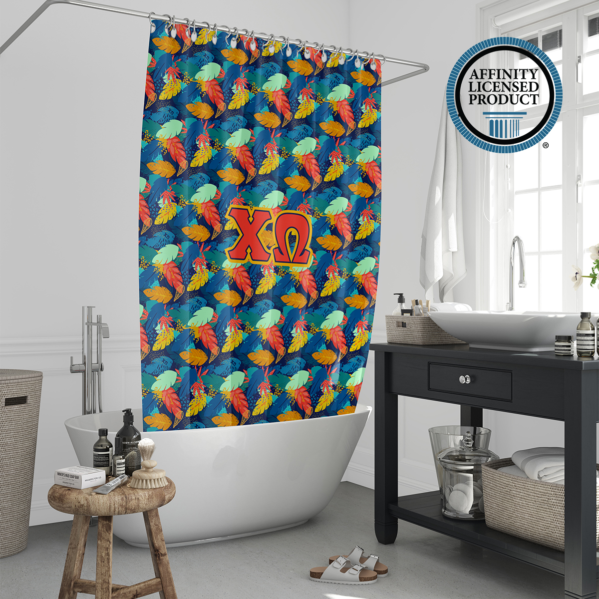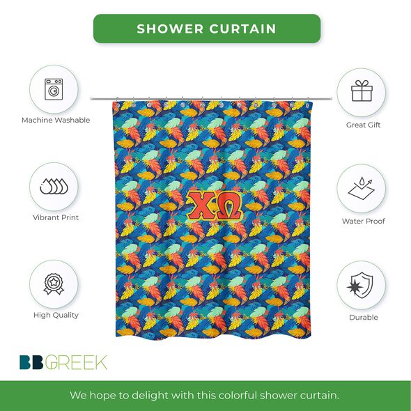 This Chi Omega shower curtain offers both visual appeal and practical use. The durable material and long-lasting print make it a reliable Chi Omega accessory for home decor. Easy to install and maintain, it adds a meaningful touch to your bathroom while reflecting sorority in a subtle, everyday way. Ideal for use in sorority houses, dorms, or personal residences.