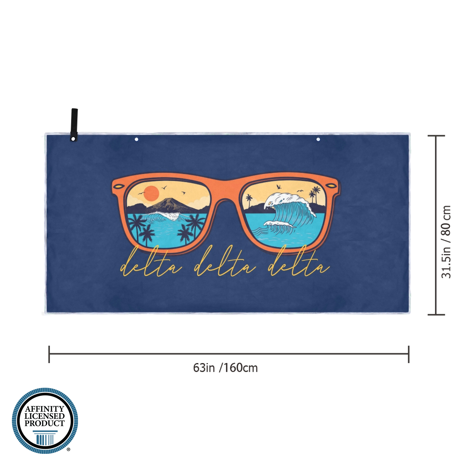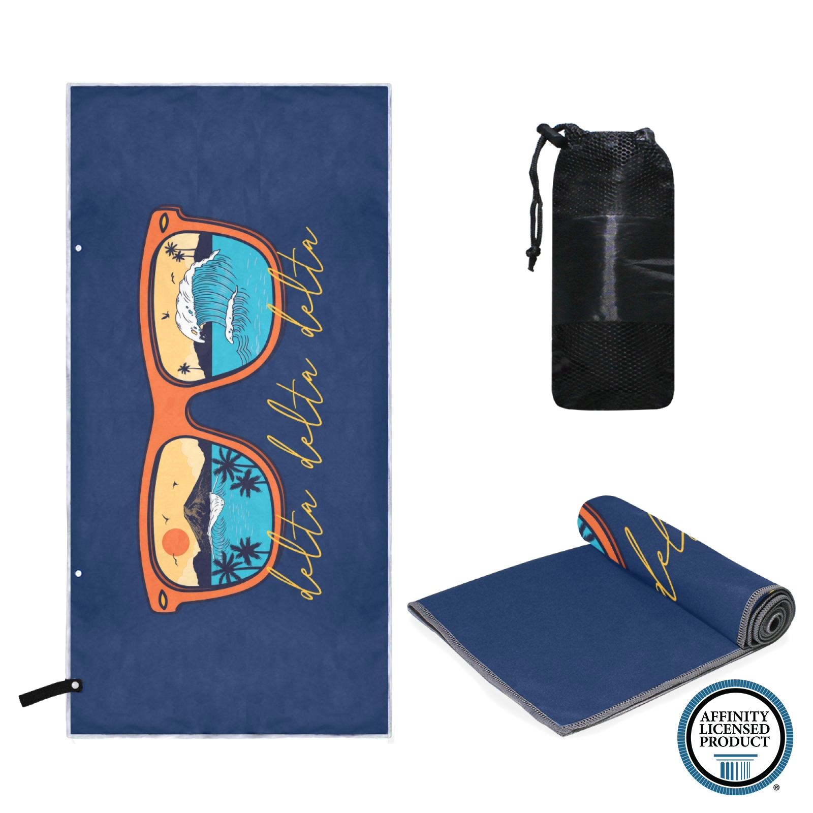Tri Delta (Delta Delta Delta) - Large Microfiber Beach, Picnic, Outdoor Blanket - Surf Sunglasses - Dark Blue