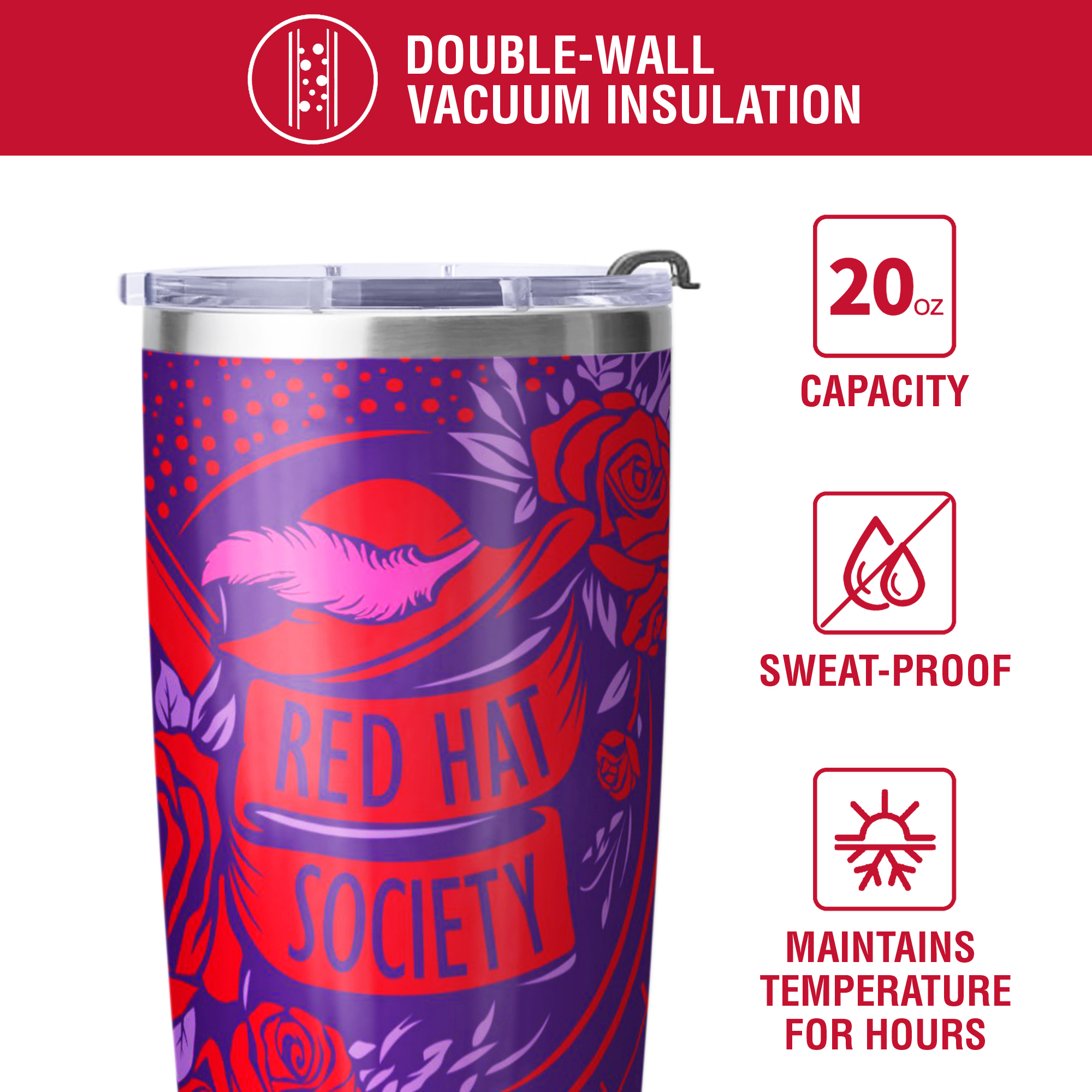OFFICIALLY LICENSED: This tumbler is an officially licensed Red Hat Society product, crafted to meet the highest standards of quality and authenticity.