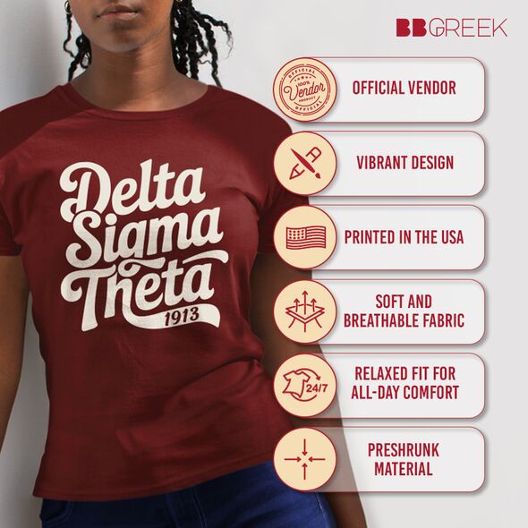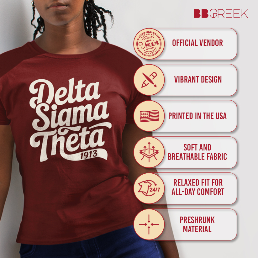 Crafted from 4.5-ounce, 100% ring-spun cotton or a premium cotton-poly blend, this shirt is decorated in the USA using durable screen-printing techniques. The collegiate coat of arms graphic is printed with attention to detail and built to last through regular wear. Machine wash cold inside out with like colors, use only non-chlorine bleach when needed, tumble dry low, and do not iron the print. This shirt is an officially licensed Delta Sigma Theta Sorority, Inc. product, designed in compliance with the organization's quality standards.