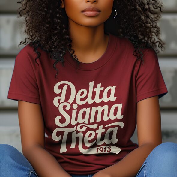 This Delta Sigma Theta crew neck shirt features a collegiate coat of arms print that reflects the sorority's legacy. Designed for everyday wear or special sorority events, it combines comfort, style, and durability. Whether layered or worn on its own, the shirt offers a relaxed and flattering fit suitable for a range of occasions and seasons.